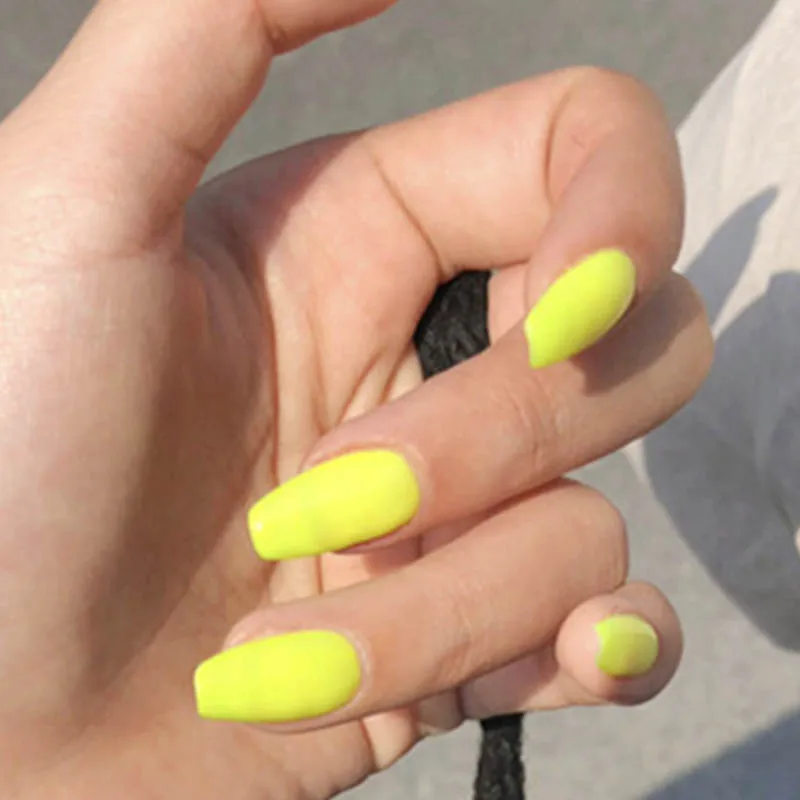 Модные ногти в стиле Ins 24 шт., Новые матовые накладные ногти с полным покрытием, желтого цвета, прижмите ногти в европейском, американском стиле, с клеем