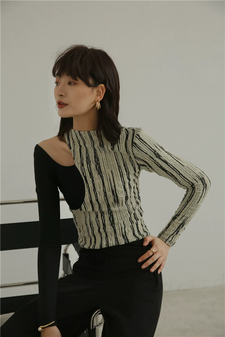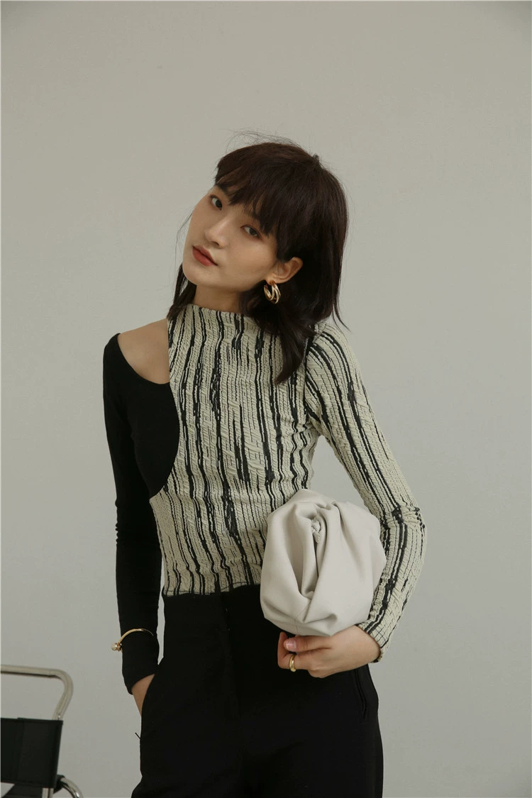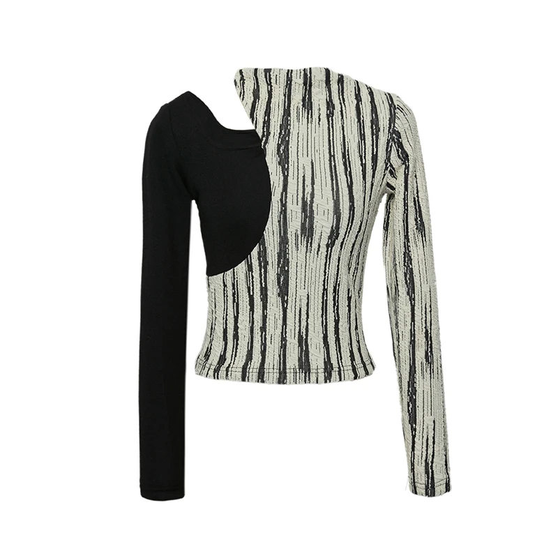 Женская дизайнерская футболка с вырезами, с длинным рукавом, в стиле пэчворк