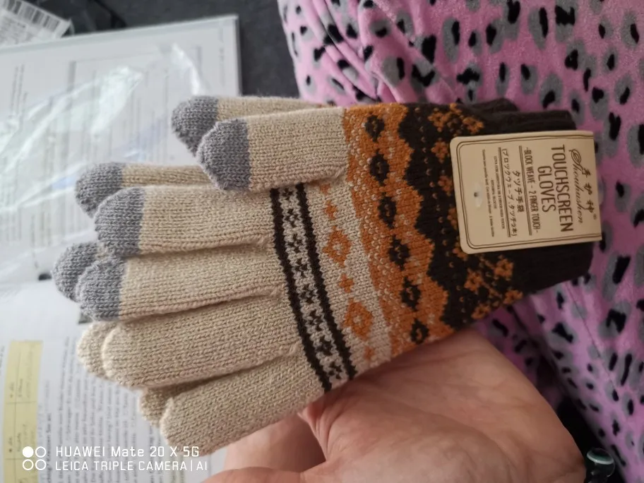 Перчатки с сенсорным экраном женские зимние вязаные плюшевые жаккар...