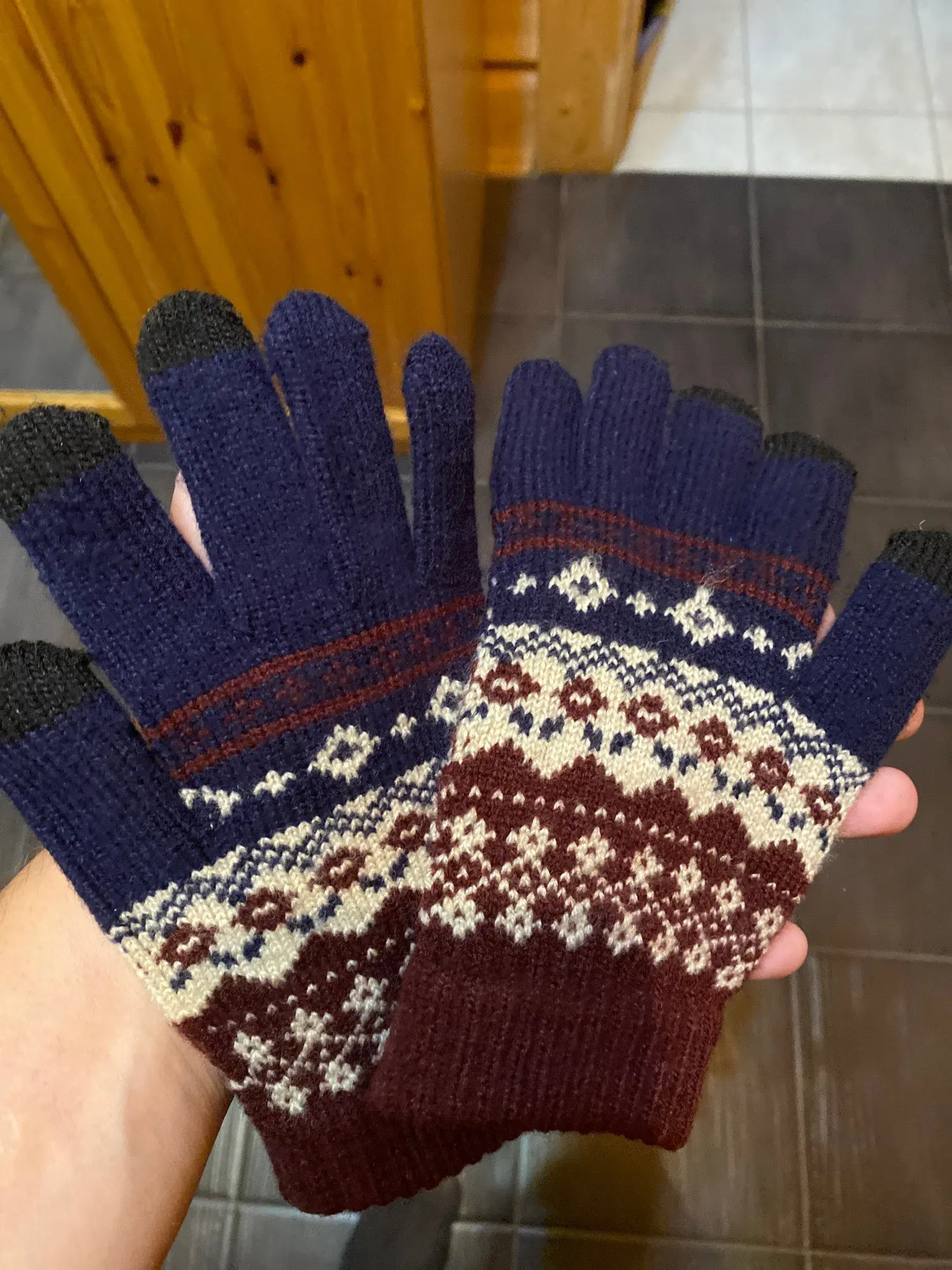Зимние теплые жаккардовые тянущиеся вязаные перчатки для мужчин и ж...
