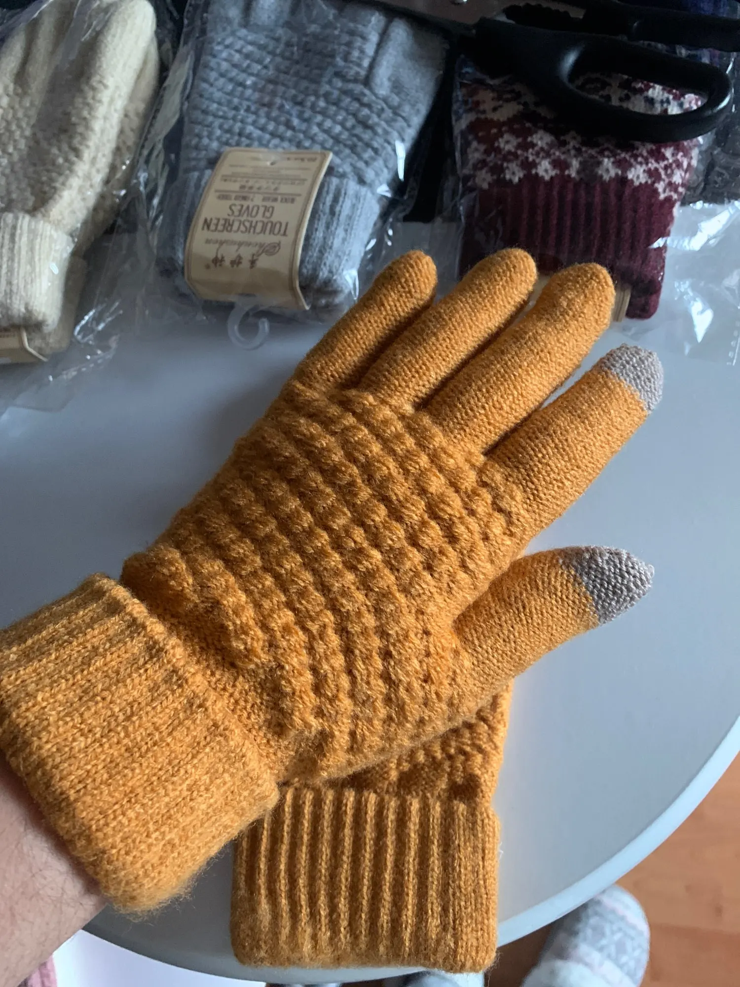 Зимние мягкие вязаные перчатки для экрана текстовые емкостные перча...