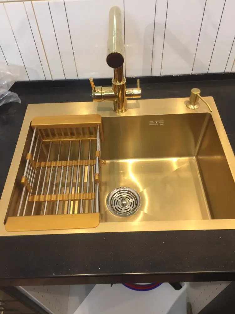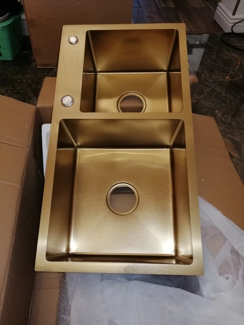 Золотая кухонная раковина с двойным котелком 304 кухонная раковина из нержавеющей стали, кухонная раковина над стойкой с ситечком для слива волос, отправка из Бразилии