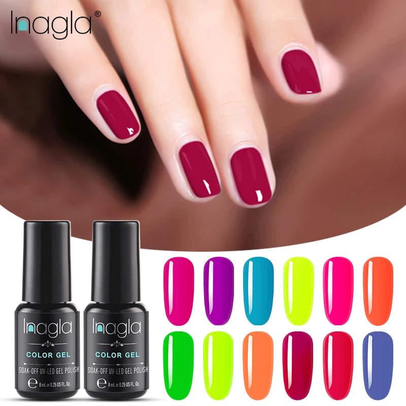 Inagla флуоресцентный отмачиваемый Базовый Гель-лак, верхнее покрытие, матовый Гель-лак для ногтей, 8 мл, долговечный цветной гель для ногтей для маникюра