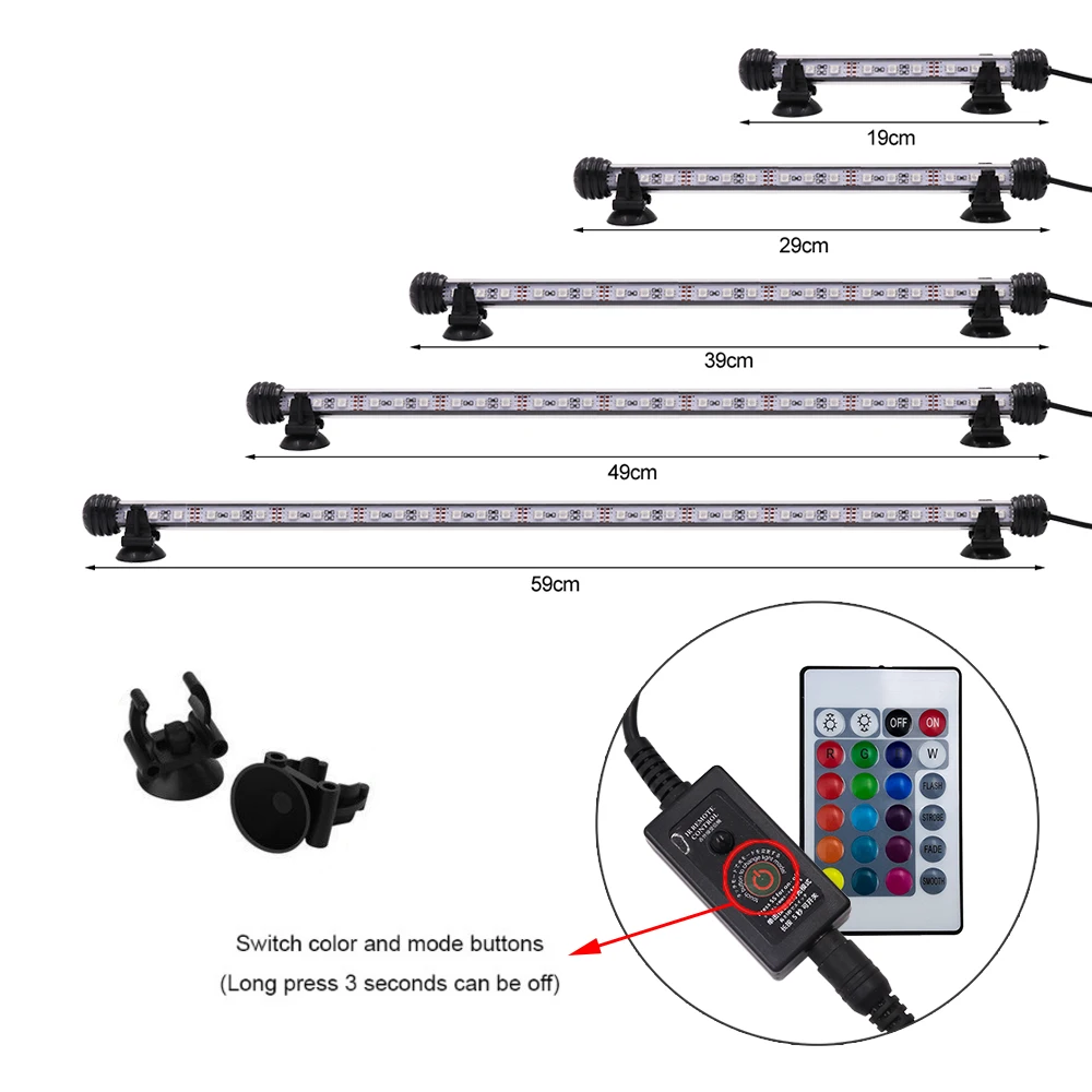 4. Два способа управления-этот светильник для аквариума Поддерживает пульт дистанционного управления и кнопку питания, вы также можете изменить цвет и режим светильник, нажмите кнопку питания на линии, если вы не можете найти пульт дистанционного управления.