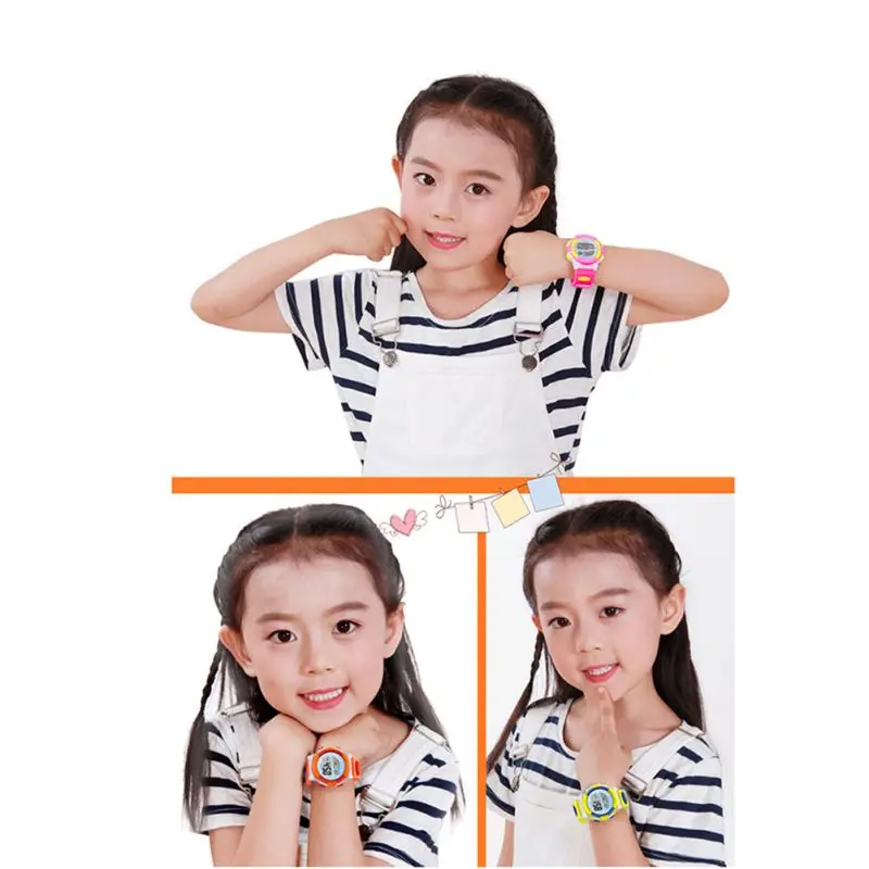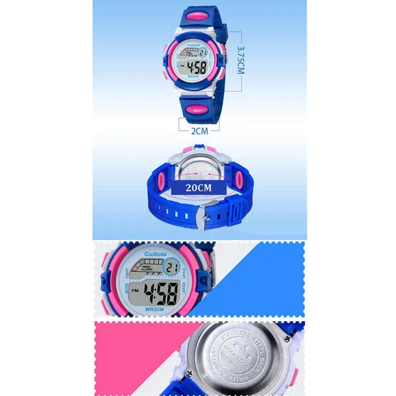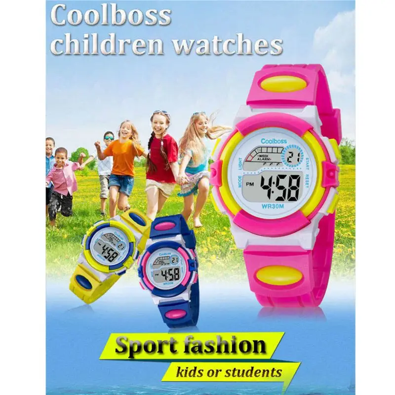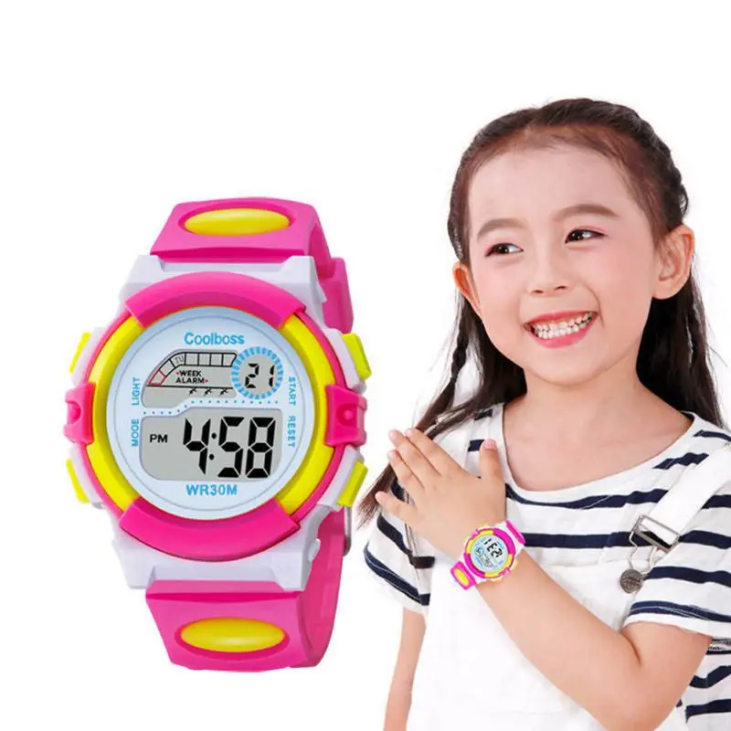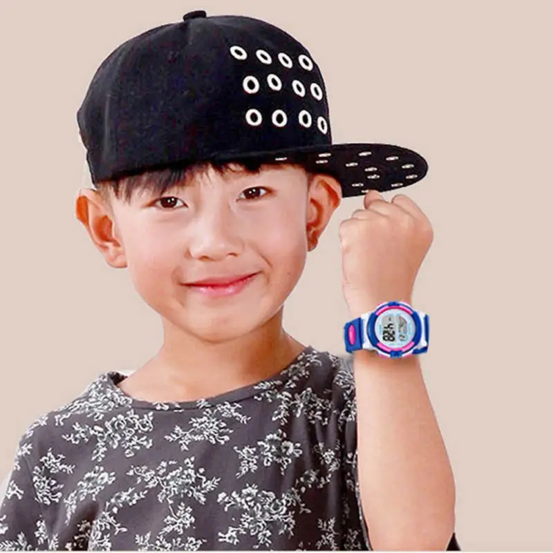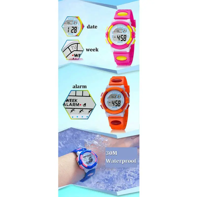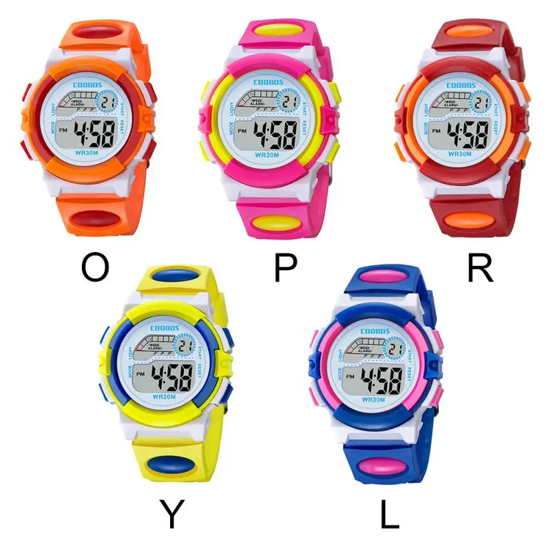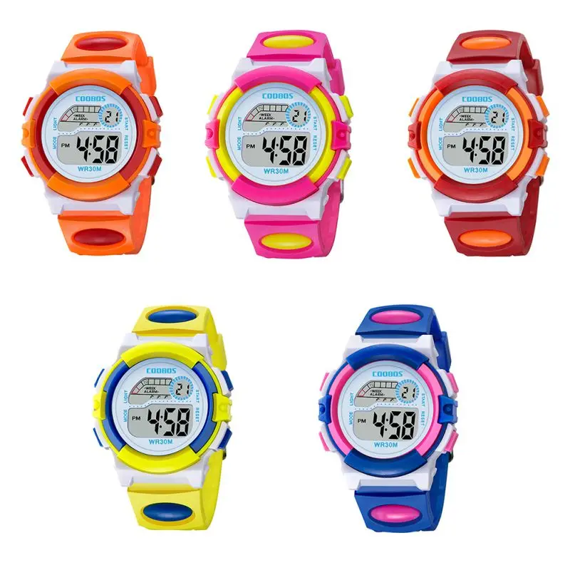 Водонепроницаемые спортивные детские Студенческие часы, детские часы с будильником, цветными светодиодными наручными часами, наручные часы с дисплеем