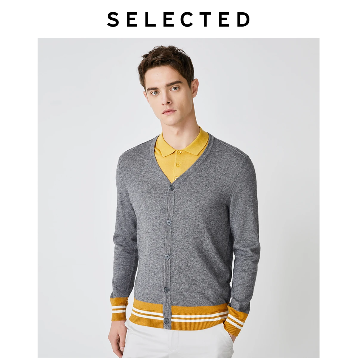 Мужской шерстяной вязаный кардиган в полоску, разные цвета, S 419324520