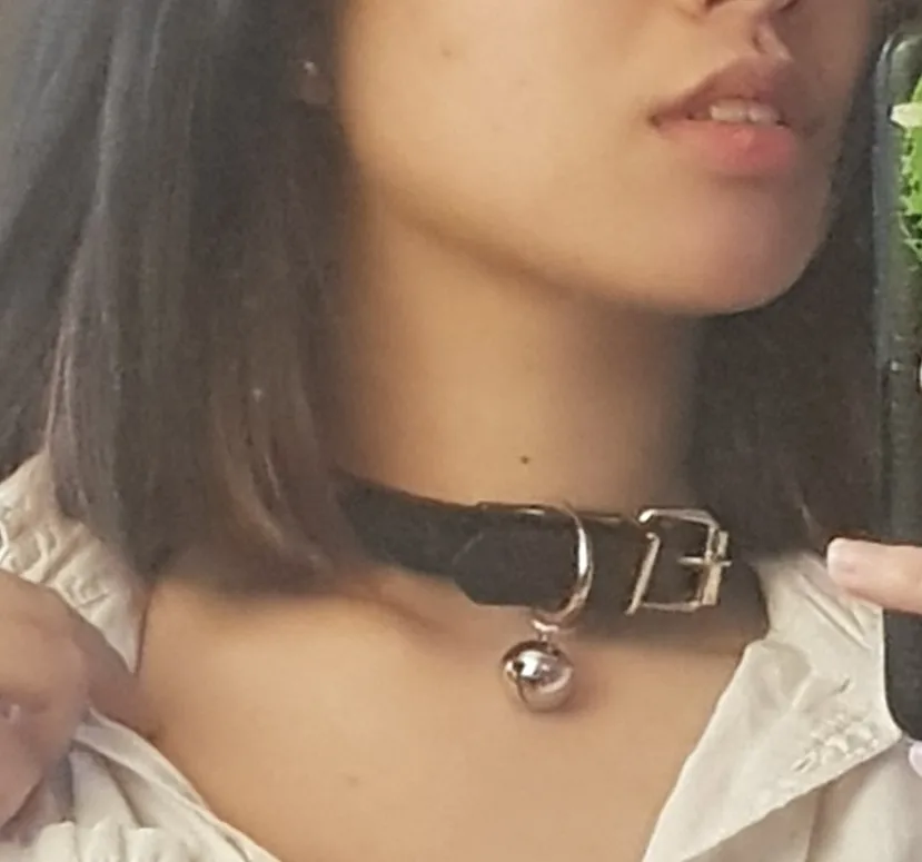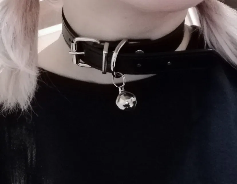 Среди всех вариантов чокеров-ошейников с бубенчиком на али -- этот чокер самый классный! Во-первых, изнутри приятный (подшит кажется) материал, думаю, не натрёт, хорошо выглядит с эстетической точки. Здорово прострочен нитью, края ровные и нет ощущения, что их грубо обрезали, как бывает у иных чокеров. Полоска толстенькая довольно, внушительная. Есть металлический держатель для свободного конца. Кстати, на мою шею (я парень) не жмёт. Много дырочек с расчёт на разный объем. Бубенчик выглядит мило. Есть только один минус -- он при малейшем движении звенит и звук не слишком приятный. Но я затолкал в него кусочек ваты, сейчас он только слегка позвякивает, мне нравится. Очень советую!