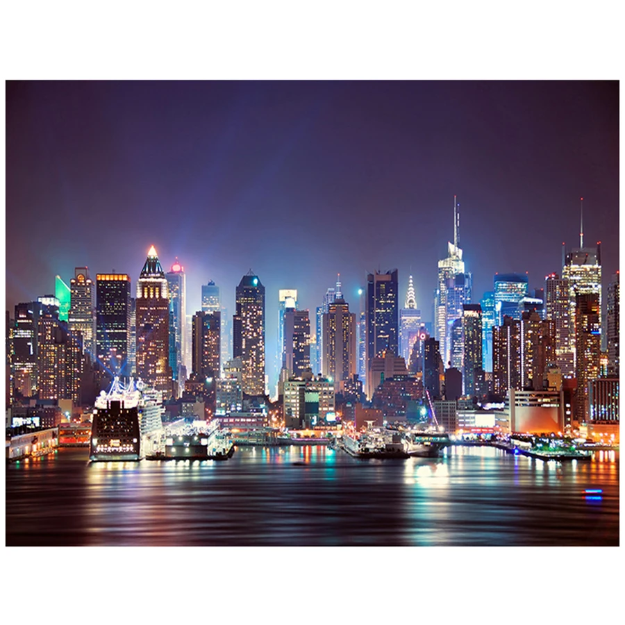 Набор для алмазной вышивки сделай сам, полноразмерная круглая мозаика, приморский город, ночное виденье, алмазная 5d Вышивка крестиком aaпланета