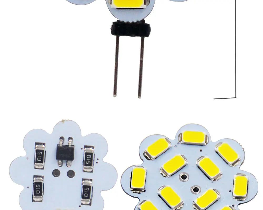 3. Напряжение: 12 В постоянного тока4. Разъем: G45. Модель светодиодного чипа: 0,2 Вт 5730 SMD светодиодные чипы6. Светодиодный индикатор: 12 шт.7. Индекс цветопередачи: Ra808. Цветовая температура: холодный белый 6000-6500K, теплый белый 2800-3200K9. Угол луча: 180 градусов10. (чип на плате) Срок службы: 20000 часов11. Гарантия: 2 года