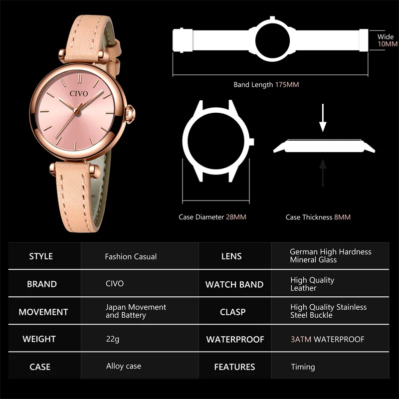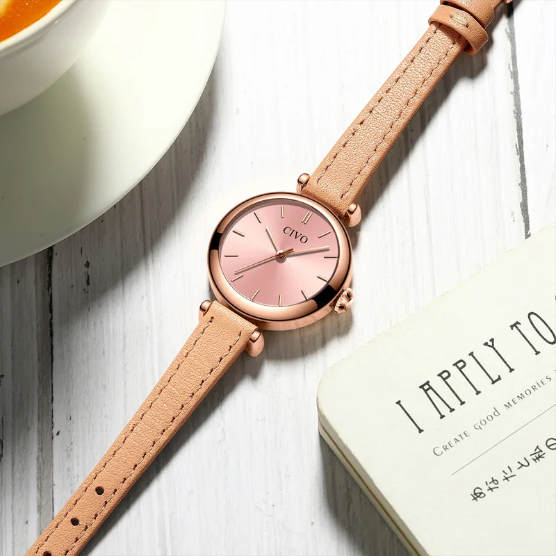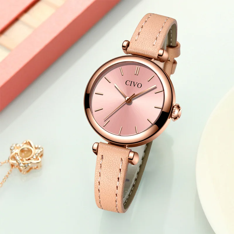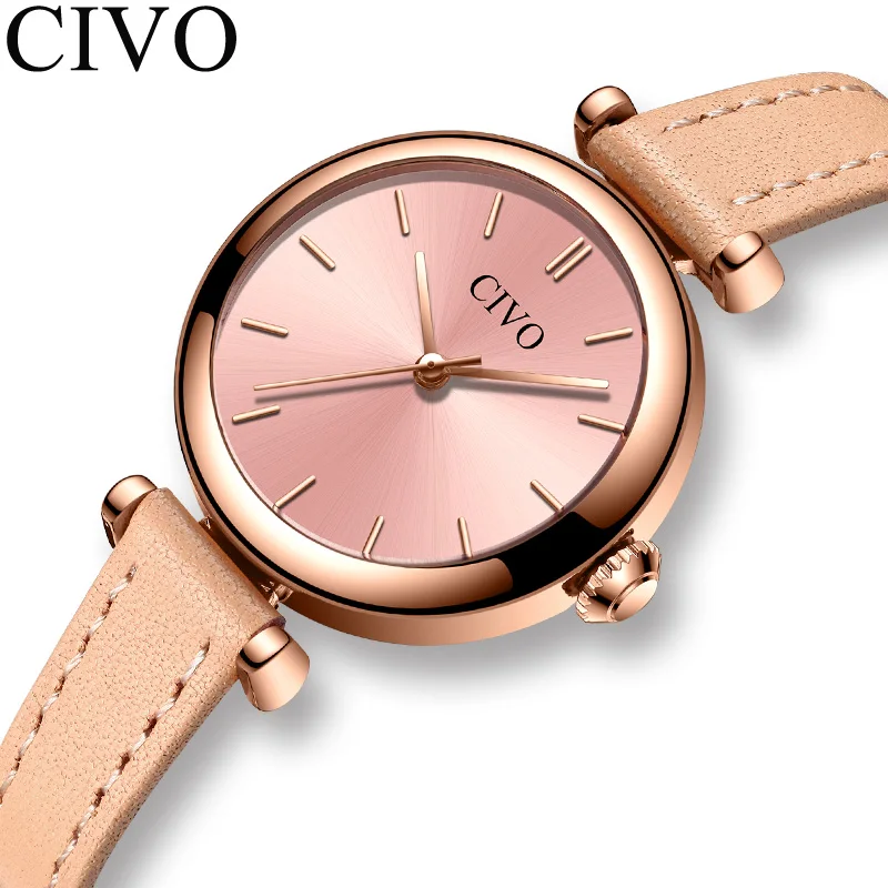 Роскошные женские наручные часы CIVO, модный розовый циферблат, простой стиль, женские водонепроницаемые кварцевые часы 2019, повседневные наручные часы под платье