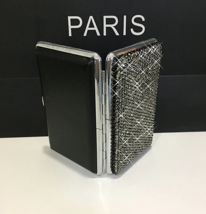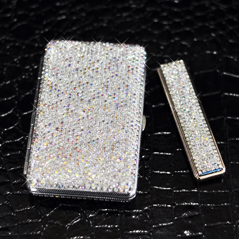Портативный Женский чехол для сигарет с бриллиантами, зажигалка с кристаллами, тонкая сигарета, держатель для 14 сигарет, зажигалки с USB-зарядкой