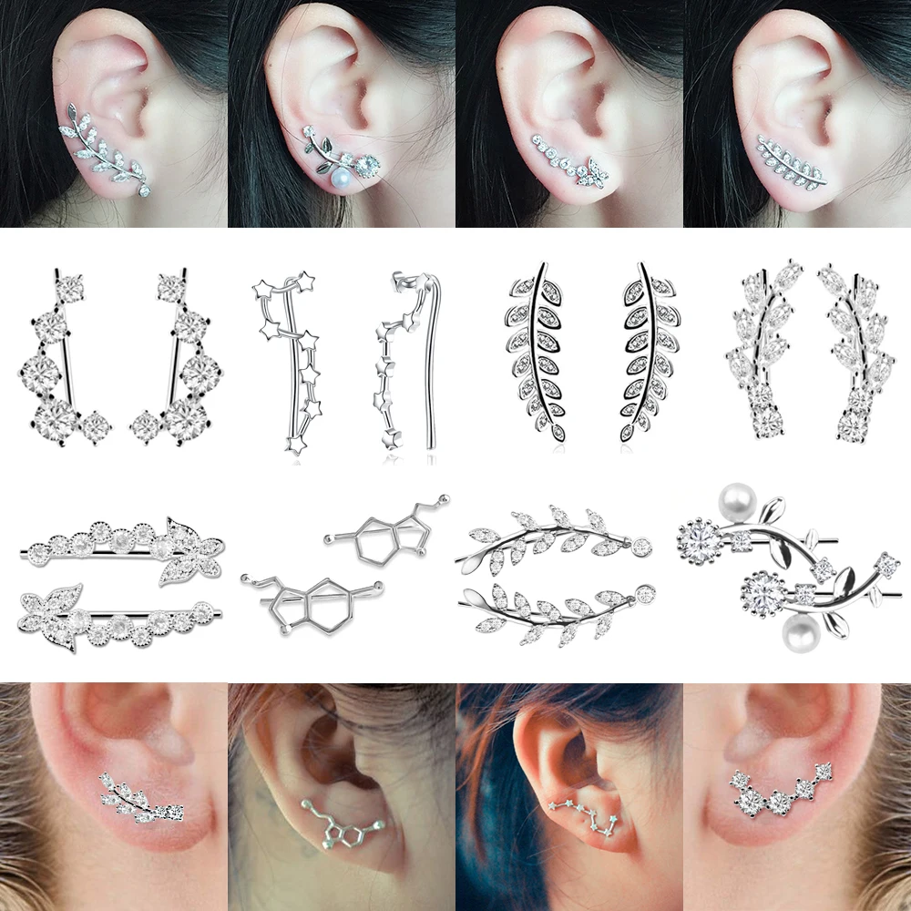 Серьги-гвоздики серебристого цвета для ползунков ушей, альпинистов, гвоздиков, пирсинг для пупка, клипсы-манжеты с листьями для женщин и мужчин, подарочное Ювелирное Украшение для тела, 2 шт.
