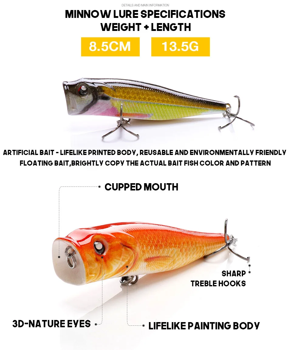TREHOOK 8,5 см 13,5 г японская плавающая Поппер рыболовная приманка воблер искусственная наживка-Поппер рыболовная приманка жесткая приманка для форели