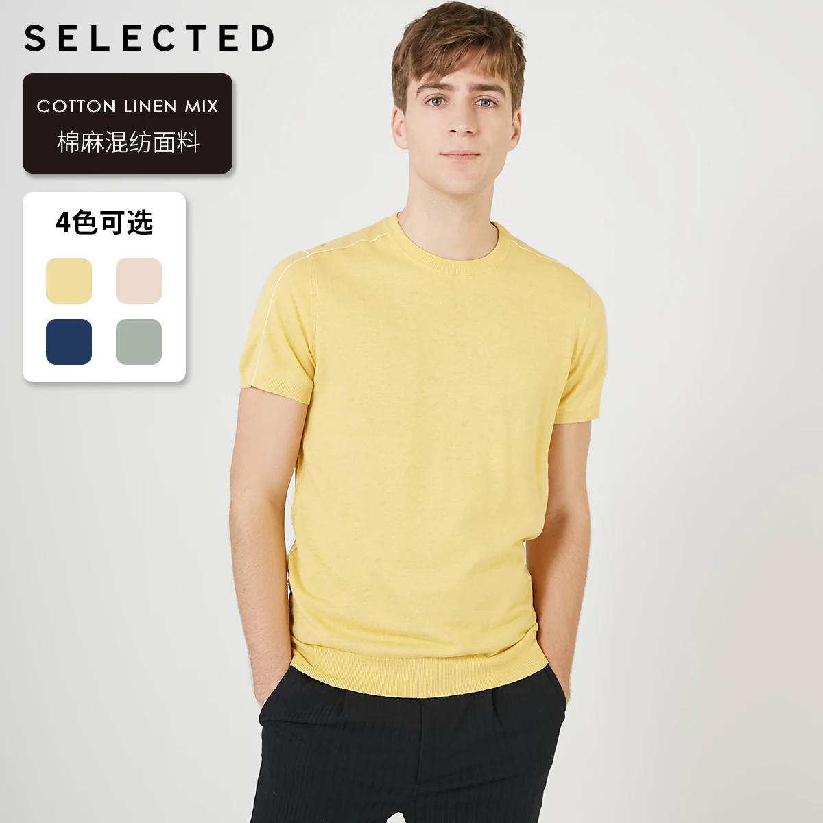 Мужская трикотажная рубашка, с круглым вырезом и коротким рукавом, S Из смеси льна, 419224507