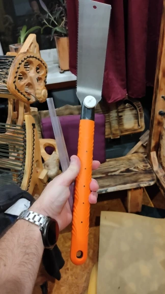 Все как в описании. Быстрая отправка и доставка. Невзирая на непривычный рсскому глазу дизайн - пилить удобно. Сухую древесину пилит как масло, очень тонкий рез и минимум опилок. Если пилите что-то дома, то это товар точно для вас. Лезвие съемное, что плюс, поскольку повторной заточке зубья пилы не подлежат - слишком мелкие, но можно будет прикупить дополнительное лезвие и сменить его.