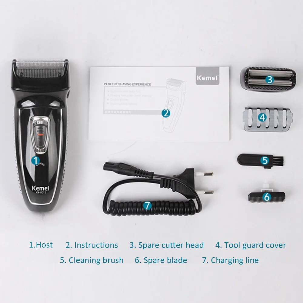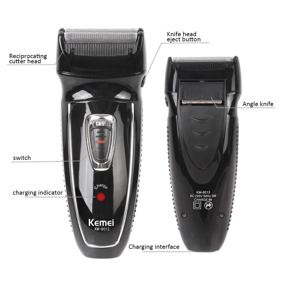 1. Используется по беспроводной сети, удобен в эксплуатации. 2. Стрижет без вреда для кожи и не застревает волосы. 3. Сверхмощный двигатель, сверхмощный, эффективный и быстрый Параметры Название: электронная Мужская бритва Модель: KM-8013 Цвет: черный Вилка: ЕС/США/Великобритания/Австралия Частота: 50/60 Гц Способ использования: способ зарядки, беспроводное использование Мощность: 3 Вт Напряжение: 220 В Время использования: 30 минут Время зарядки: 8 часов Способ стирки: нельзя стирать