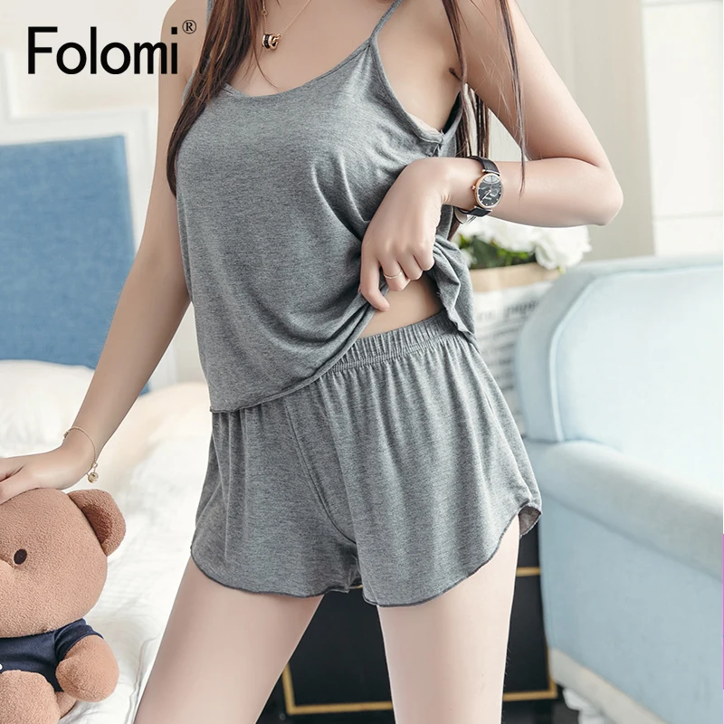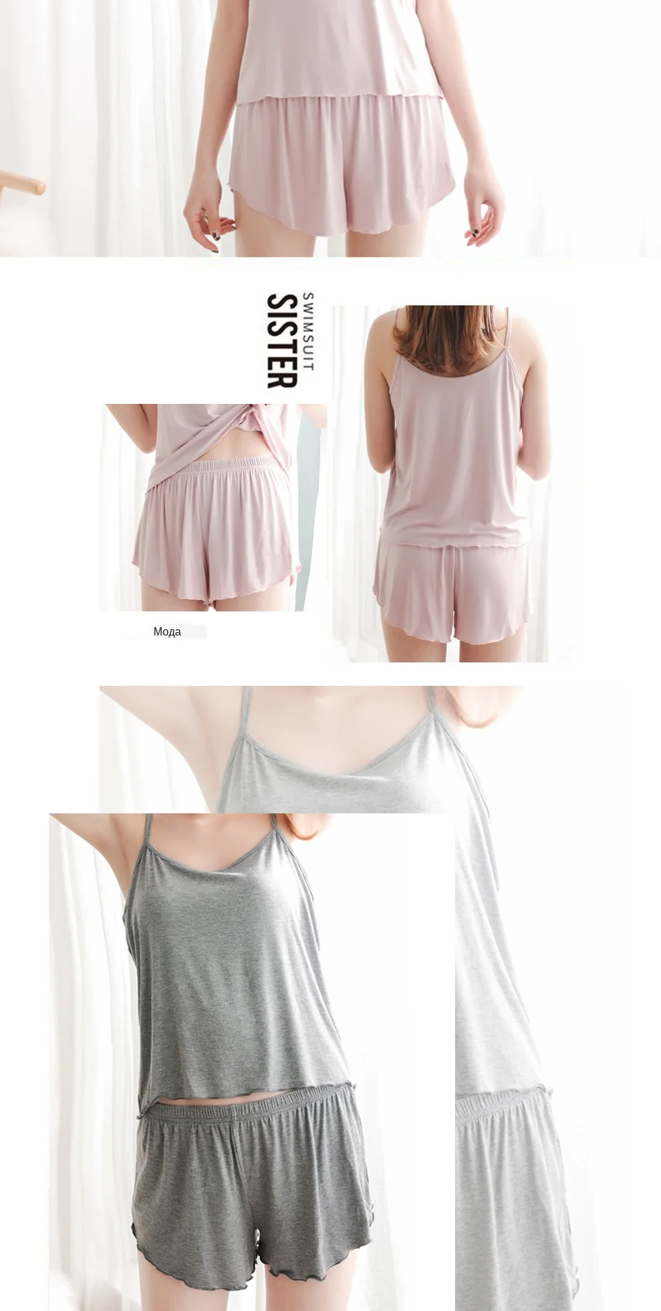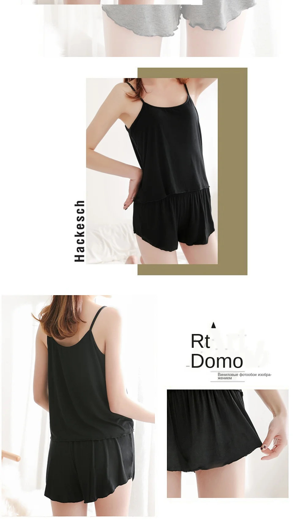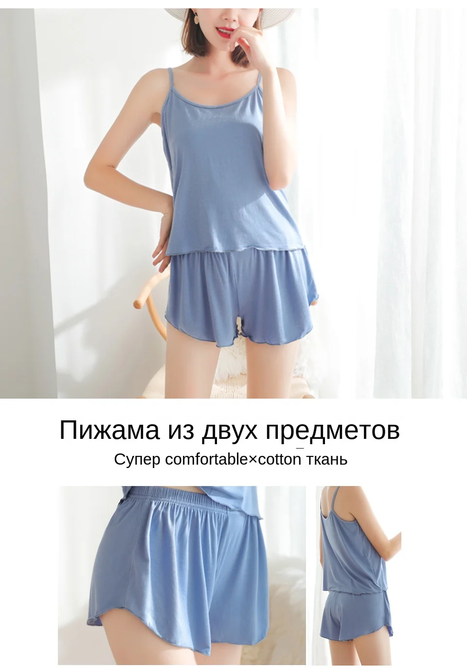 Пижама женская, однотонный пижамный комплект без рукавов на бретельках, шорты, костюмы Удобная ночная рубашка, размера плюс, XXXL