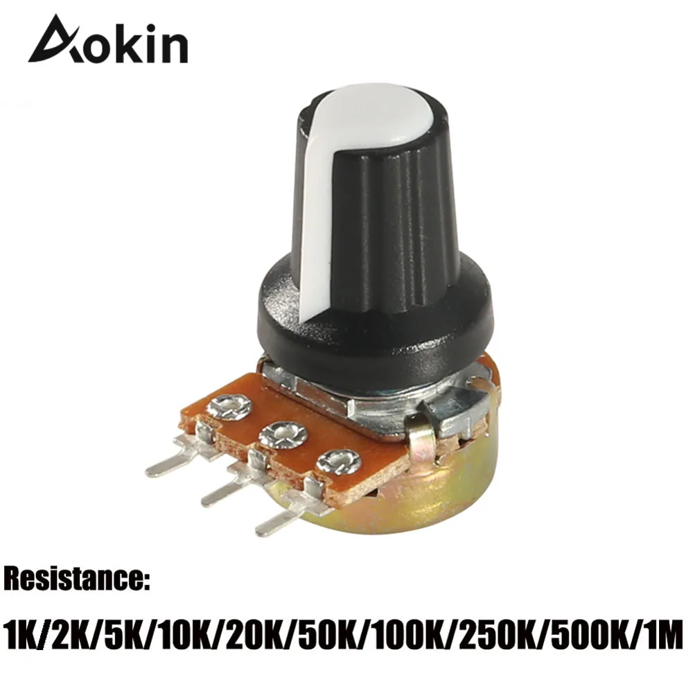 Кнопка 50-1 10 K 100 K OHM WH148, 3 контакта, 15 миллиметров, ось с линейным терминалом Porca 3 B10K, конический роторный, для Arduino, сделай сам