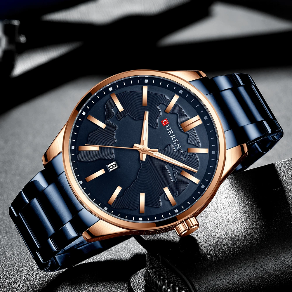 Часы наручные CURREN Мужские кварцевые, модные деловые креативные Дизайнерские наручные с браслетом из нержавеющей стали