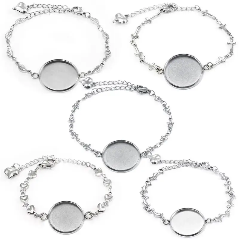 5 шт. браслет из нержавеющей стали браслет основа круглый кабошон 20 мм Камея для браслетов заготовки лотков ободок настройки DIY ювелирных изделий