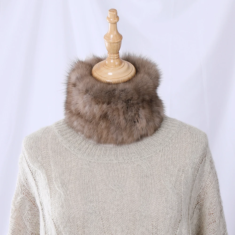 Высококачественный Женский 100% натуральный мех соболя вязаный шарф-хомут Scarve женский шарф-кольцо шейный платок повязка на голову хомут эластичный