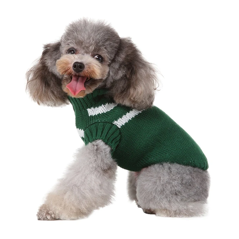 Теплый полосатый свитер для собак, осенне-зимняя вязаная одежда для щенков, утепленный костюм для маленьких и средних собак