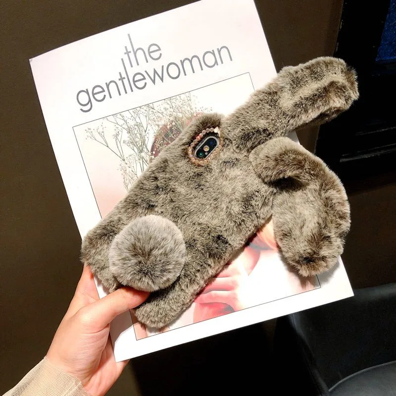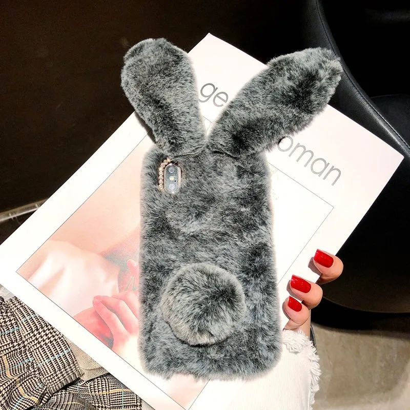 Чехол с мехом кролика для iPhone 12 11 Pro MAX 12 mini pro 7 8 6 6S...