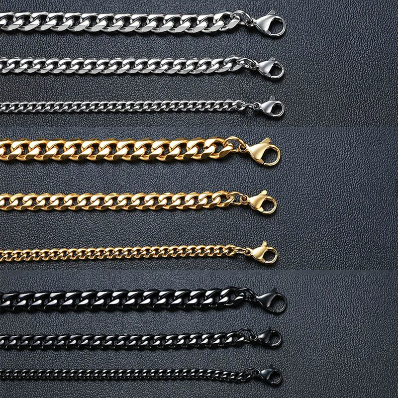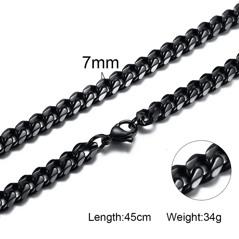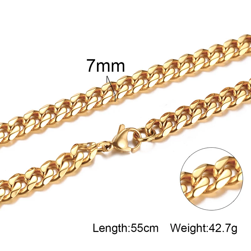 Ожерелье-цепочка из нержавеющей стали в стиле панк от 3 мм до 7 мм для женщин и мужчин, с плоским звеном, черногозолотого цвета, модное ожерелье 2020, 18 дюймов, 20 дюймов, 22 дюйма