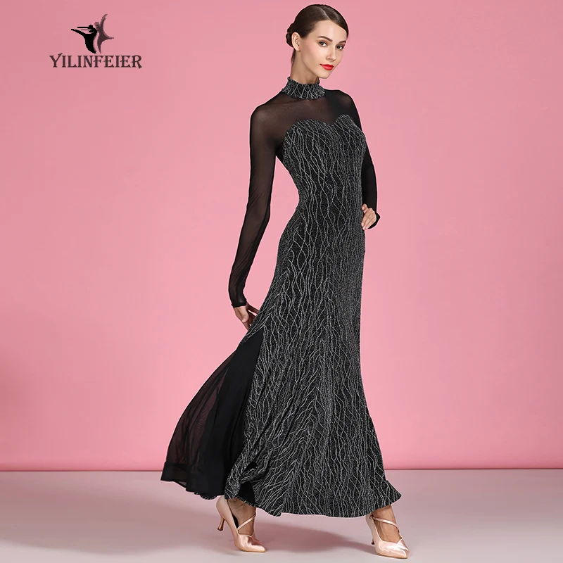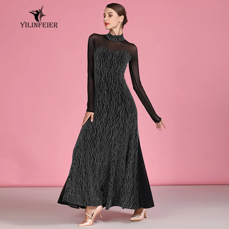 Новое бархатное платье для бальных танцев, конкурсных танцев, бальных танцев, вальсов, стандартное танцевальное платье, женское бальное платье, 1882