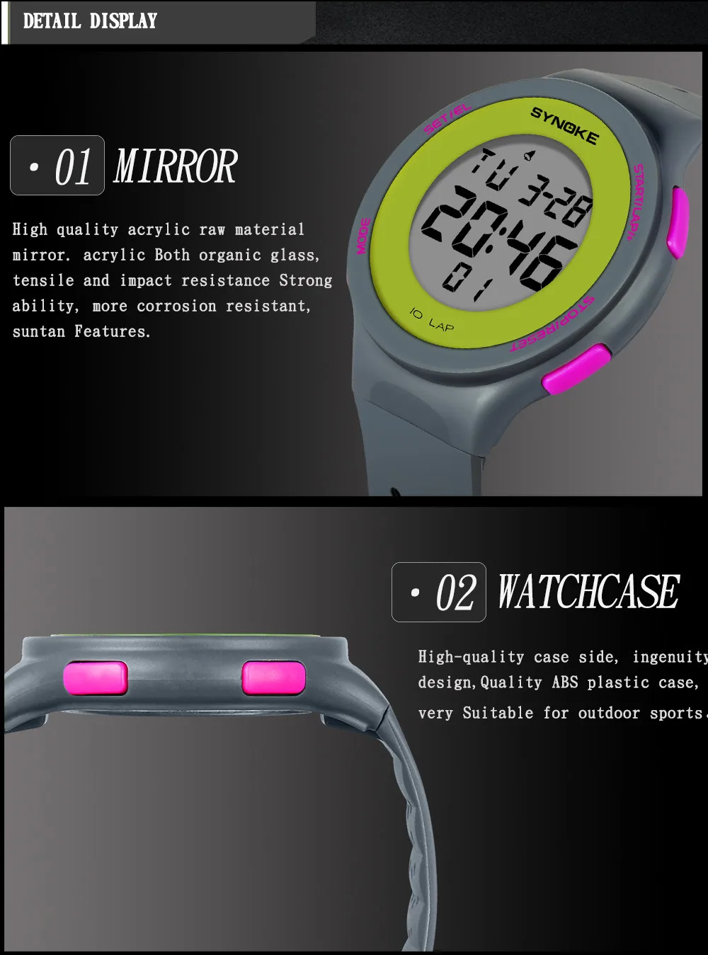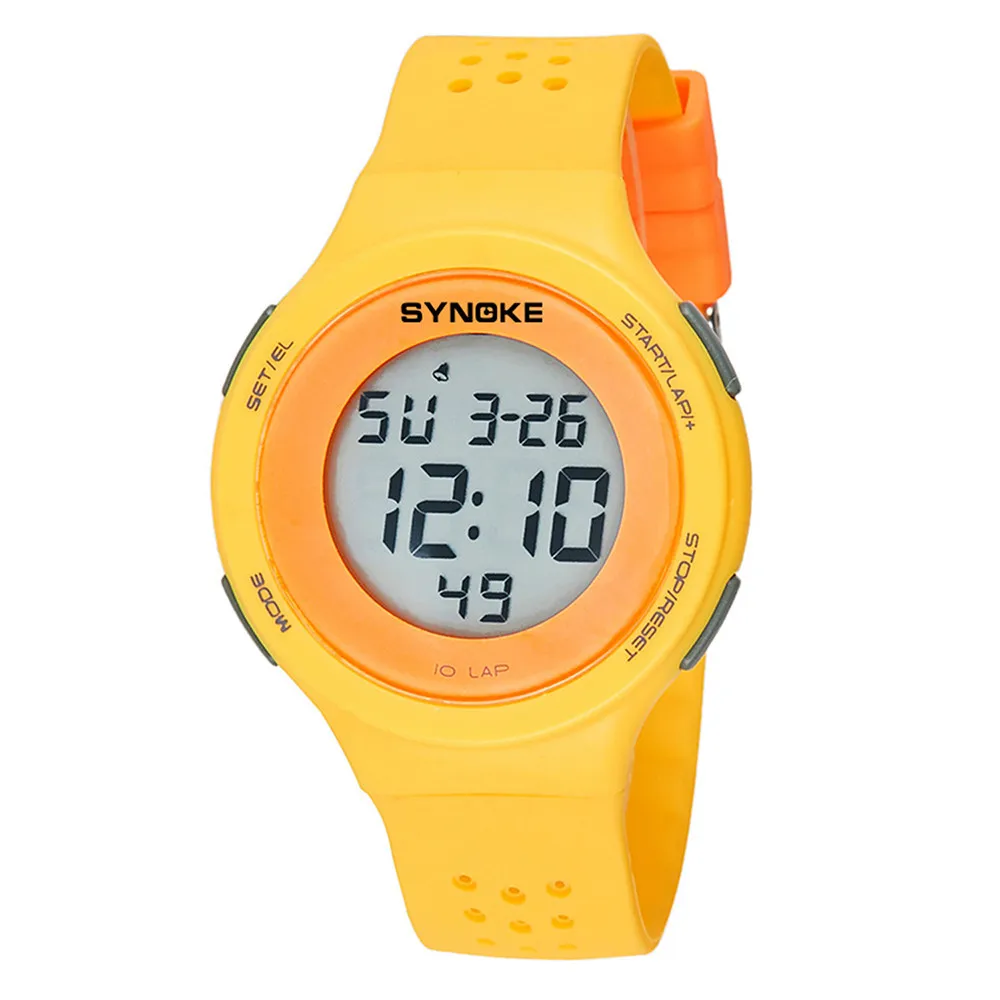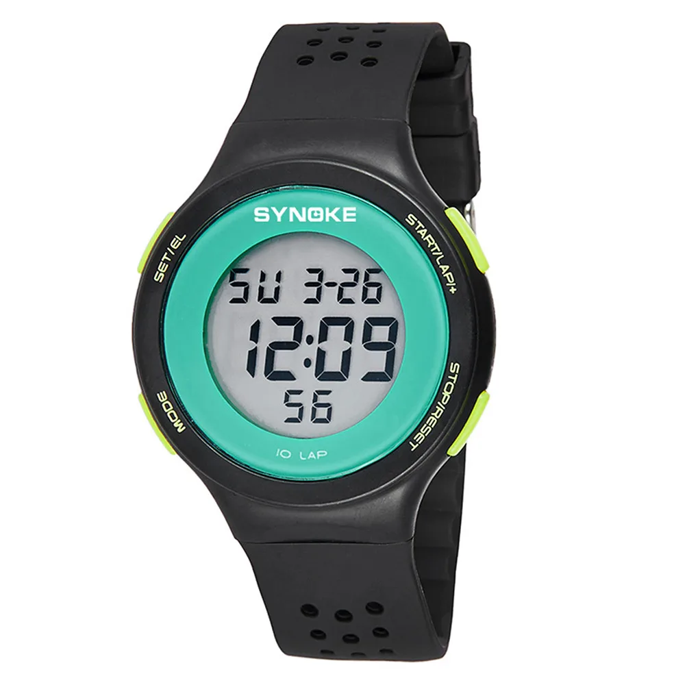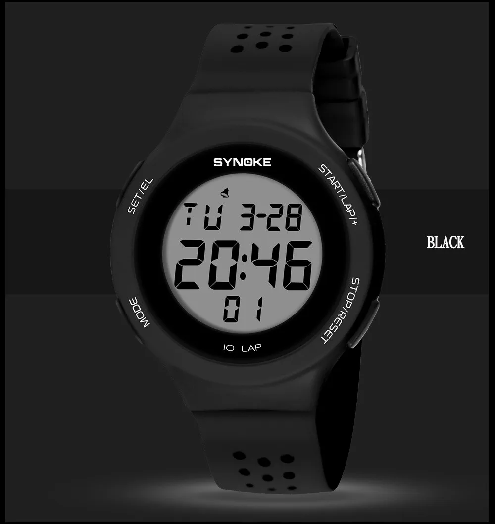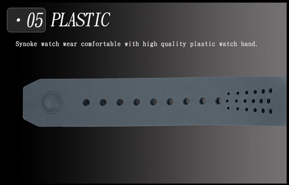 Бренд SYNOKE Модель 67866 Движение Высококачественный электронный механизм с высококачественной батареей CR2025 Особенности Световой сигнал, будильник, водонепроницаемость 50 метров, ежечасный сигнал, секундный хронограф, день недели, 12/24 часов. Материал Высококачественный ABS пластиковый чехол, высококачественный PU пластиковый ремешок, толстое и твердое зеркало из смолы, нижняя крышка из нержавеющей стали, Пряжка из нержавеющей стали. Цвет Желтый, красный, черный, темно-зеленый, серый, сапфирСпецификация: