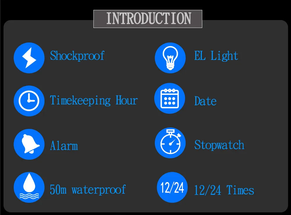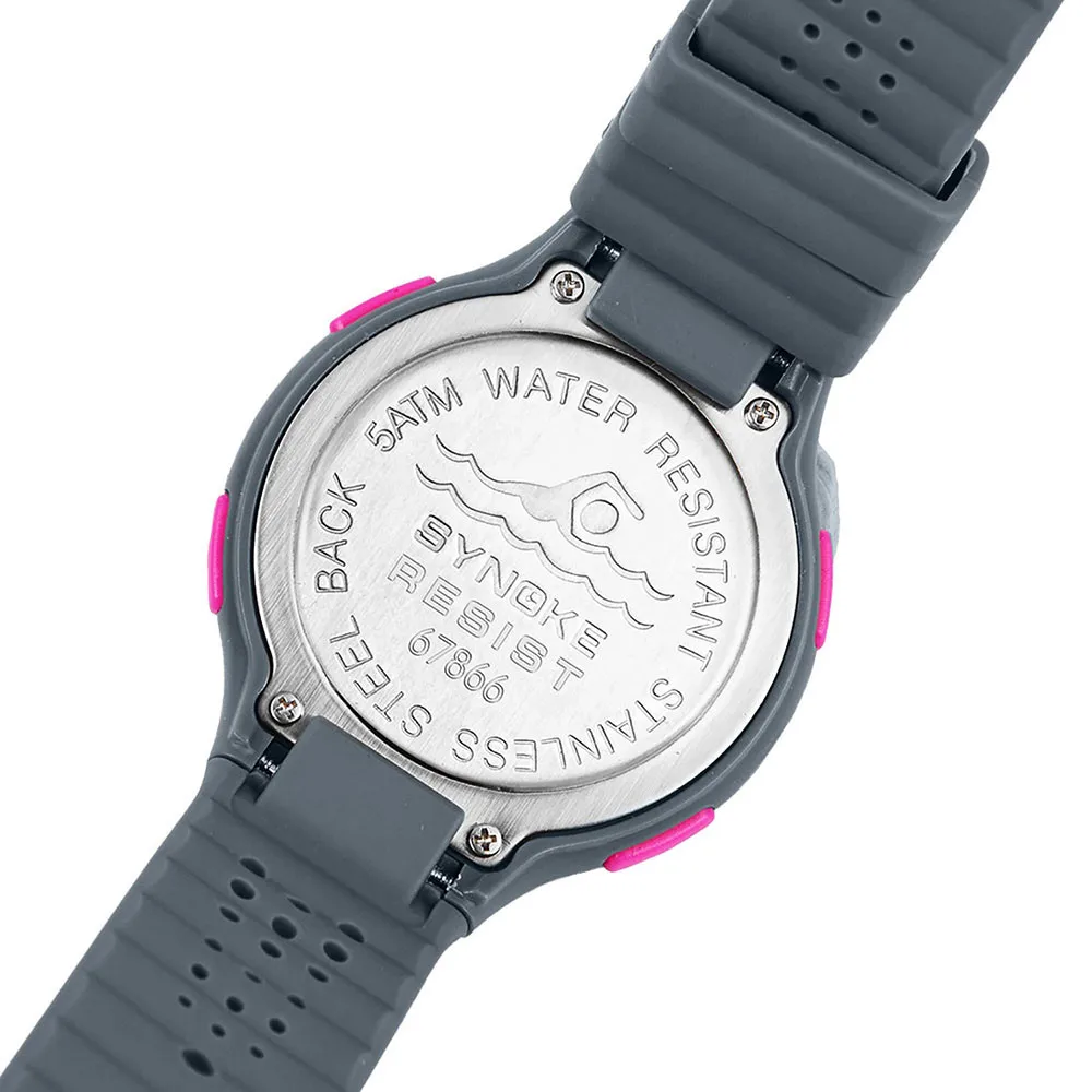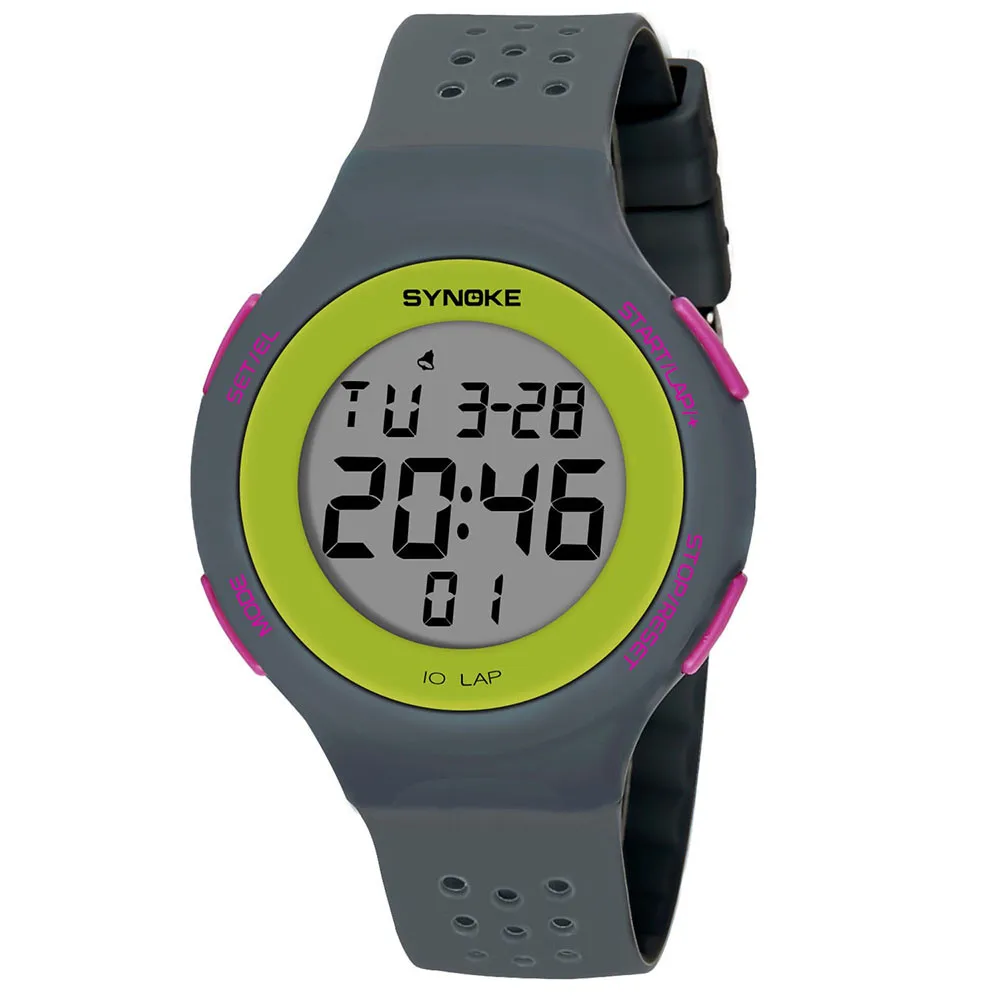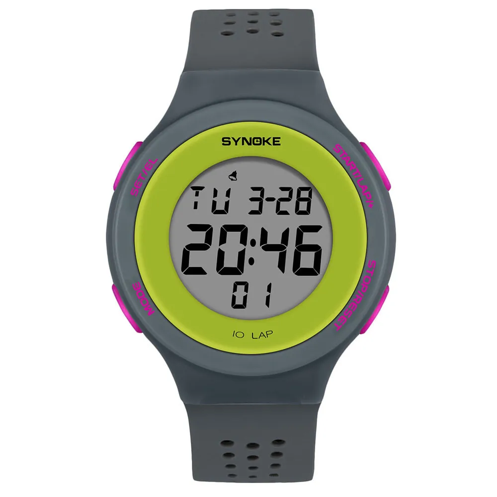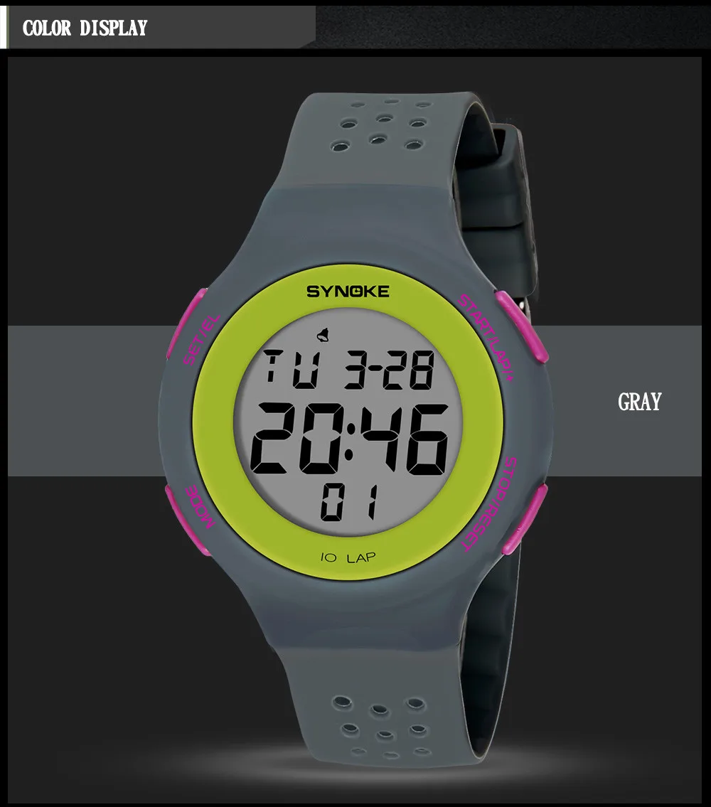 Бренд SYNOKE Модель 67866 Движение Высококачественный электронный механизм с высококачественной батареей CR2025 Особенности Световой сигнал, будильник, водонепроницаемость 50 метров, ежечасный сигнал, секундный хронограф, день недели, 12/24 часов. Материал Высококачественный ABS пластиковый чехол, высококачественный PU пластиковый ремешок, толстое и твердое зеркало из смолы, нижняя крышка из нержавеющей стали, Пряжка из нержавеющей стали. Цвет Желтый, красный, черный, темно-зеленый, серый, сапфирСпецификация: