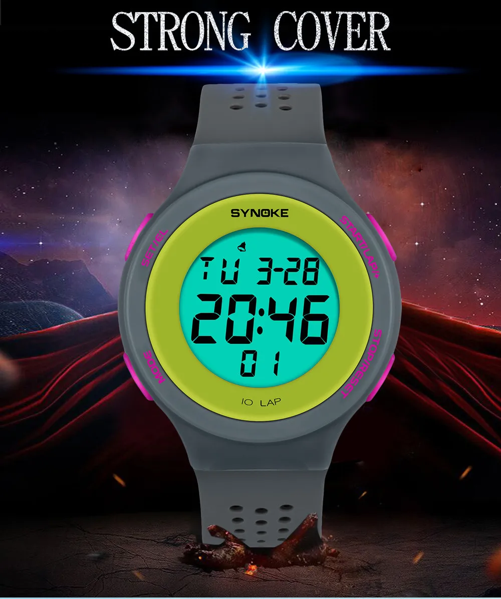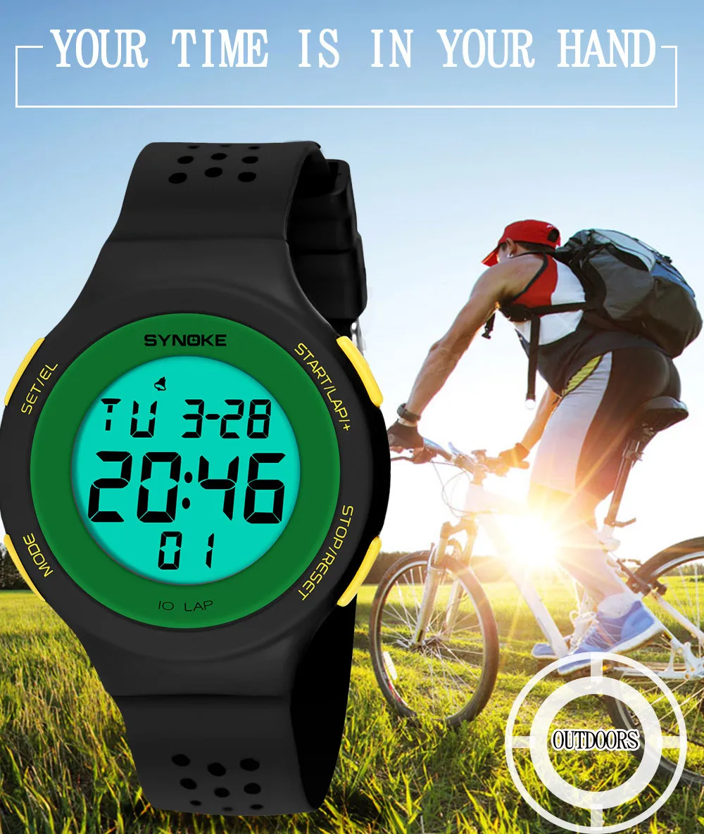 SYNOKE Роскошные мужские часы, многофункциональные водонепроницаемые часы, светодиодный, цифровые, наручные часы, силиконовые, спортивные часы, montre homme