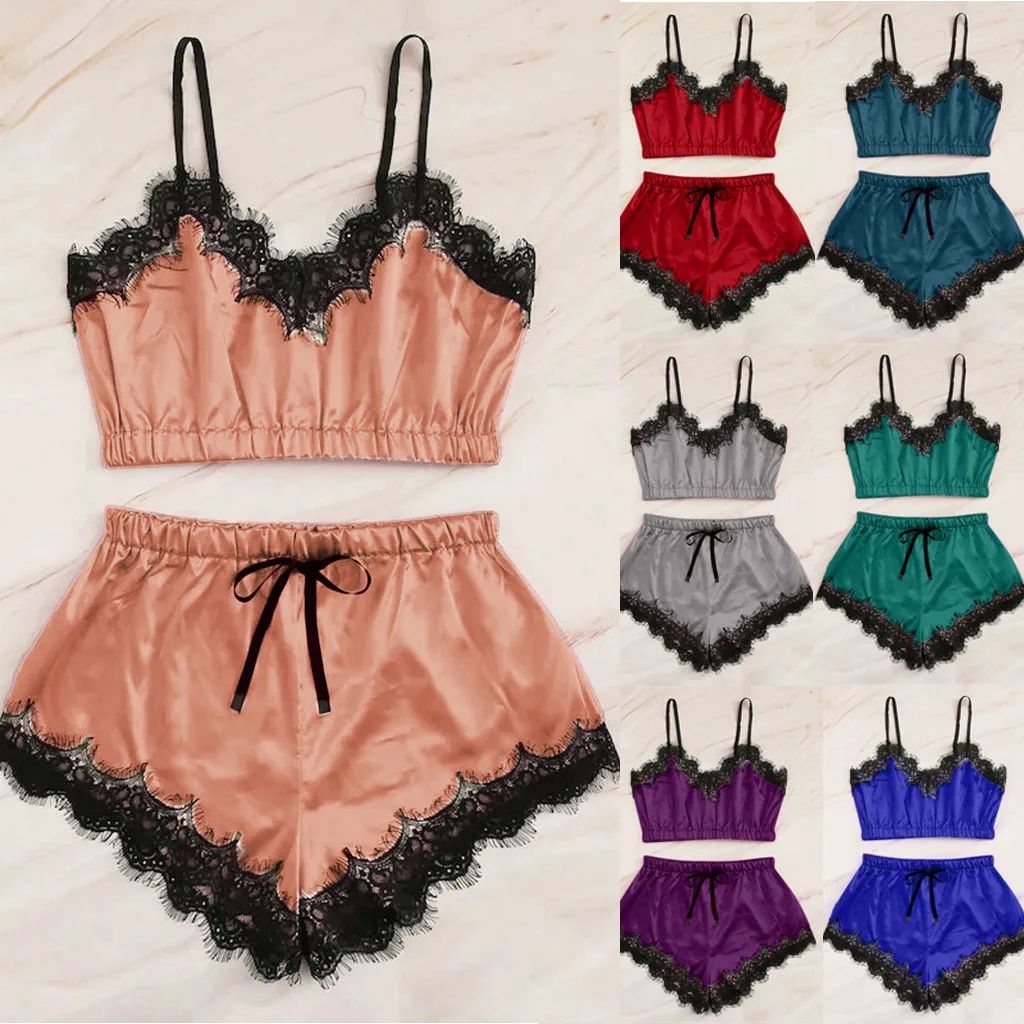 Пикантный пижамный комплект MIARHB, женская пижама, женская одежда для сна, женская ночная рубашка, Пижама, кружевной комплект из двух предметов и брюк