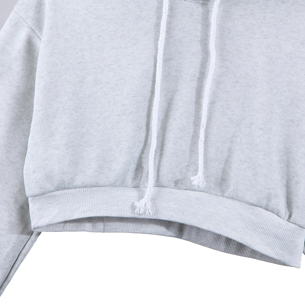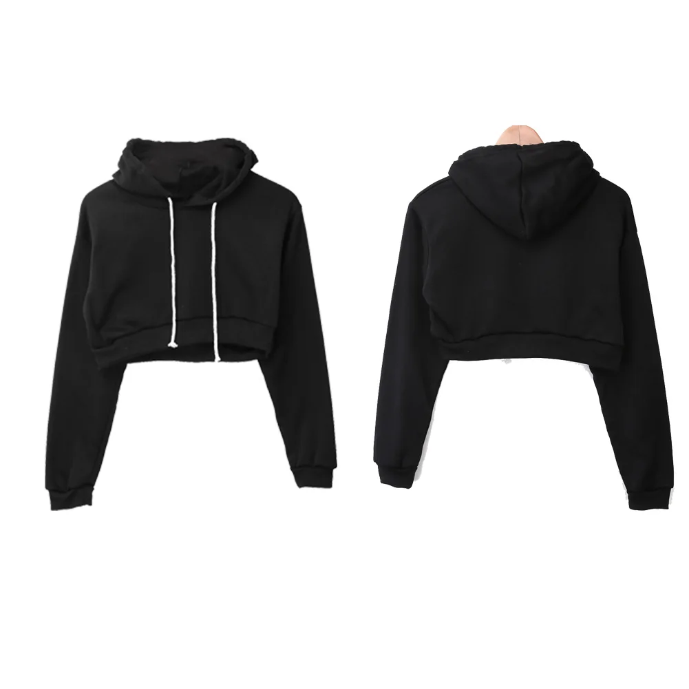 Осенняя Женская толстовка с капюшоном, однотонная укороченная Толст...