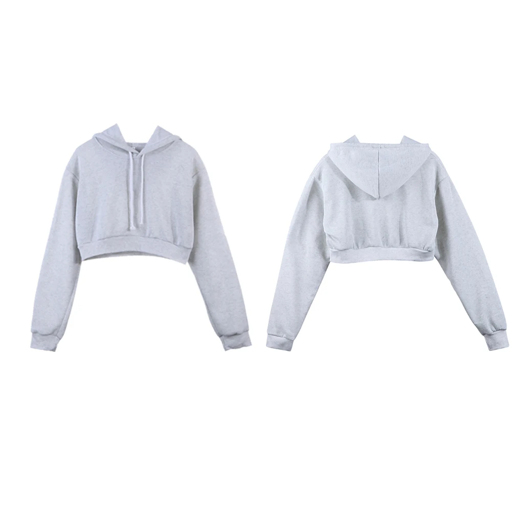 Осень-зима 2021, новая Короткая Толстовка, Женский однотонный облег...