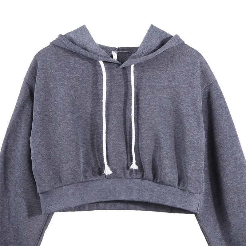Женские толстовки 2022, Осенний однотонный укороченный пуловер с ка...