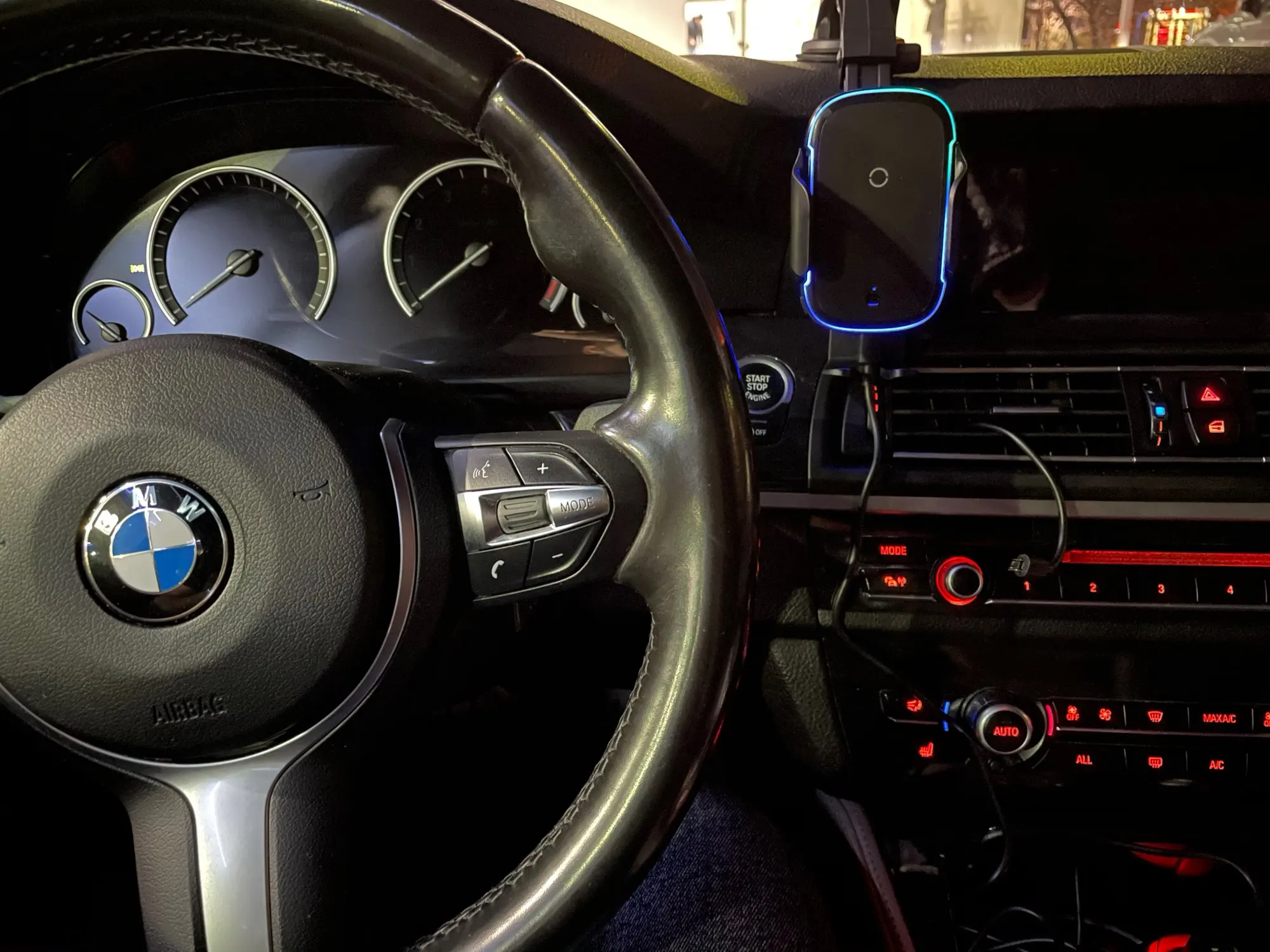 Зарядка действительно 15 ватт. Купил взамен предыдущей жужжащей 10 ваттной от этого же производителя. Данная зарядка на порядок выше. Работает тихо, приятная подсветка не мешающая в темноте, зарядка даже при навигации (не быстро, но все же). Крепёж подошёл старый. Самое главное, что при выключении зажигания, вы можете вынуть телефон нажав на кнопку, так как некоторое время держатель позволяет раздвинуть лапки.