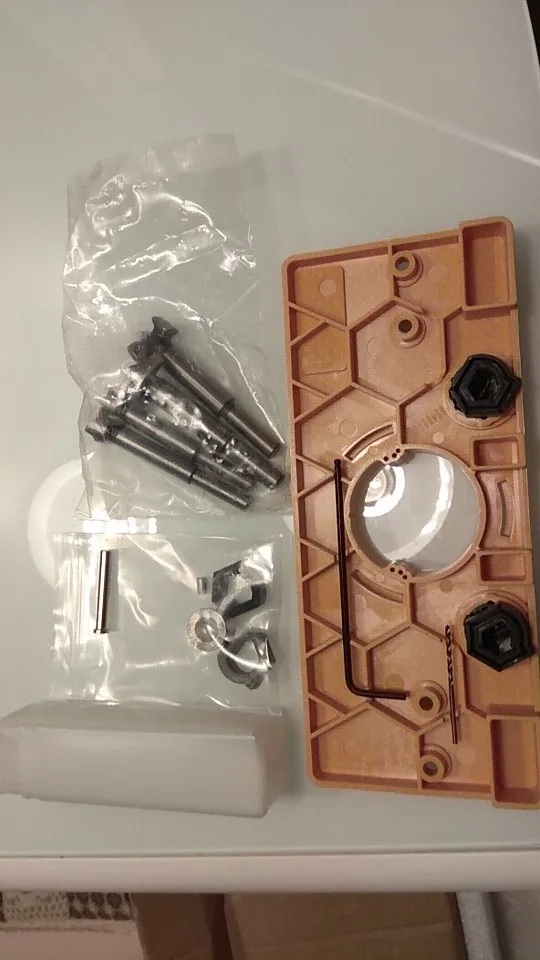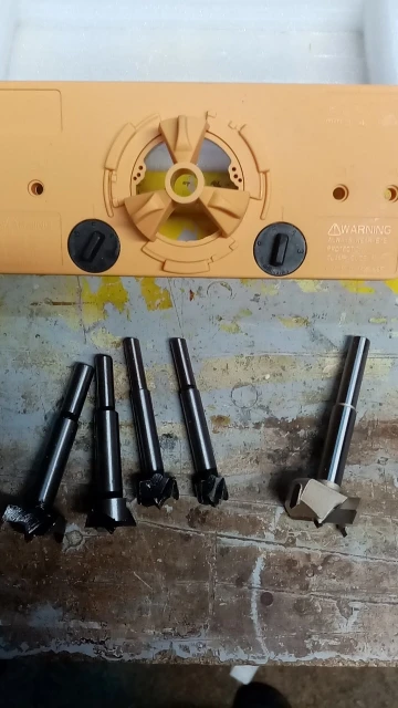 Доставили быстро. Есть сомнения в качестве исполнения. Заточка свёрл оставляет желать лучшего. Она не симметрична, а где-то и вовсе с заусенцами и закруглениями. Только сверло 35 мм упаковано в отдельный пластиковый бокс. Остальные просто лежали в коробке кучей. Нет уверенности в точности регулировки отступа. Посмотрим, как поведёт шаблон себя в работе. За эти деньги, качество соответствующее.