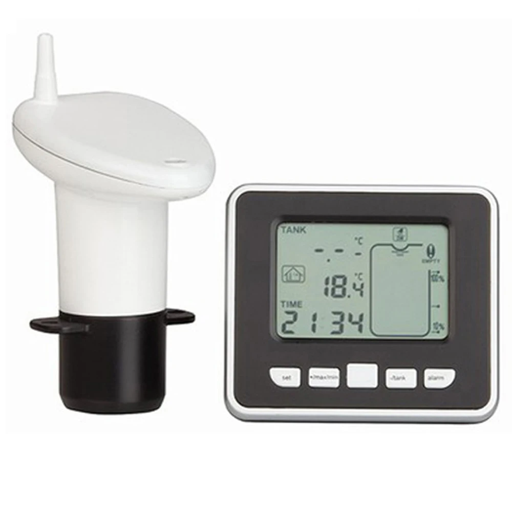 Спецификация:Материал: пластик.Размер приемника: 10,5*9,3*2,5 см.Размер передатчика: 15,5*6,5*9,5 см.Диапазон температуры в помещении: 0 ~ 60 °.Наружный Температурный диапазон: -40 ~ 60 °.Точность температуры: ± 1 °Измерение уровня воды: 0 ~ 15 м.Разрешение: 0,01 М.Точный: +/-0,03 М.Частота передачи: 433 МГц.Дальность передачи: 100 метров (300 футов) на открытой местности.Интервал передачи: 30 с при изменении уровня или 3 минуты, когда уровень не изменяется.Приемник Батарея: 2X AA 1,5 V LR3 щелочные батареи типа АА (не входят в комплект).Батарея передатчика: 6X AAA 1,5 V LR6 щелочные или литиевые батареи (не входят в комплект).Описание:Держите глаз на открытом резервуаре для воды от комфорта вашей собственной гостиной, до 100 м.Вы можете повесить приемник на стену или вытащить подставку и разместить ее на своем кухонном столе или столе.Диапазон измерения: диапазон температуры в помещении: 0 ~ 60 °; Диапазон температуры на открытом воздухе: -40 ~ 60 °; Точность температуры: ± 1 °. Датчик уровня воды измерения Диапазон: 0 ~ 15 м, Разрешение: 0,01 м, точность: +/-0,03 М. Отображает температуру в помещении (° или °) и температуру в резервуаре (° или °) одновременно.Вид вашей комнаты температуры, температуры и датчик уровня воды (представлены в 10 элемент столбчатую диаграмму). Вы можете хранить минимальную/максимальную запись и устанавливать сигналы тревоги для конкретных уровней воды (высокий/Низкий) или когда пустой.Особенности:1. Контролирует уровень глубины жидкости в резервуаре2. Уровня жидкости бака отображается на 10-элемент ЖК-дисплей столбчатую диаграмму3. Мин/Макс записи уровня жидкости в баке4. Высокий/Низкий уровень жидкости в резервуаре5. Резервуар для жидкости6. Температура в помещении (или oC)7. Температура бака (или oC)8. Будильник времени9. Отдельно стоящий или настенный подвеснойУпаковочный лист:1 X внутренний приемник1 X датчик уровня воды