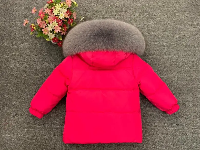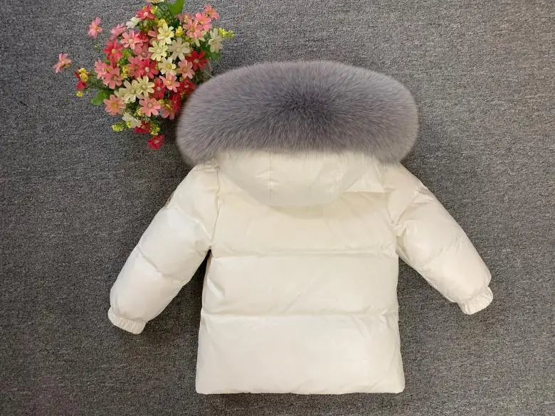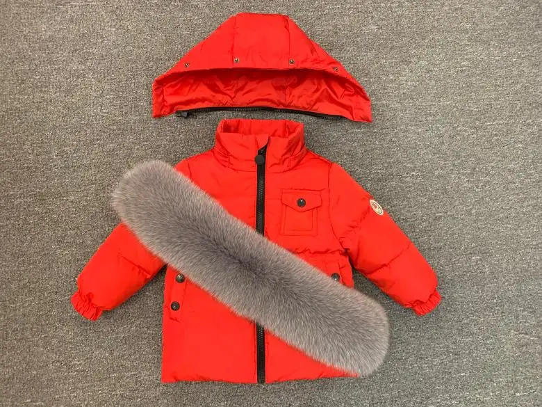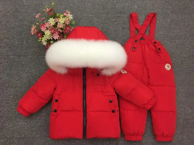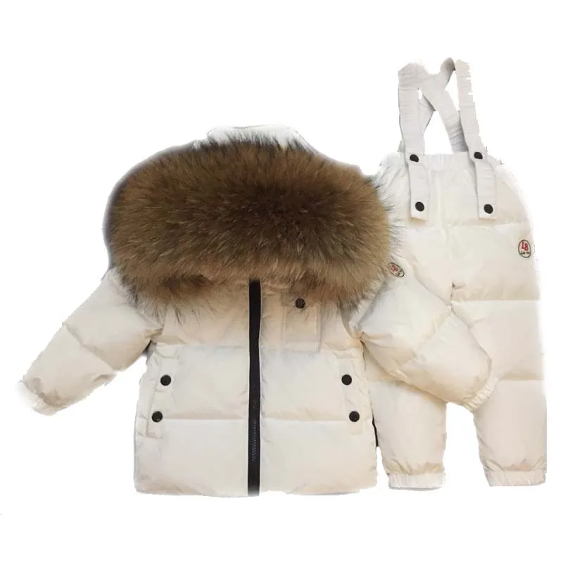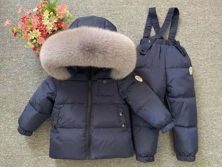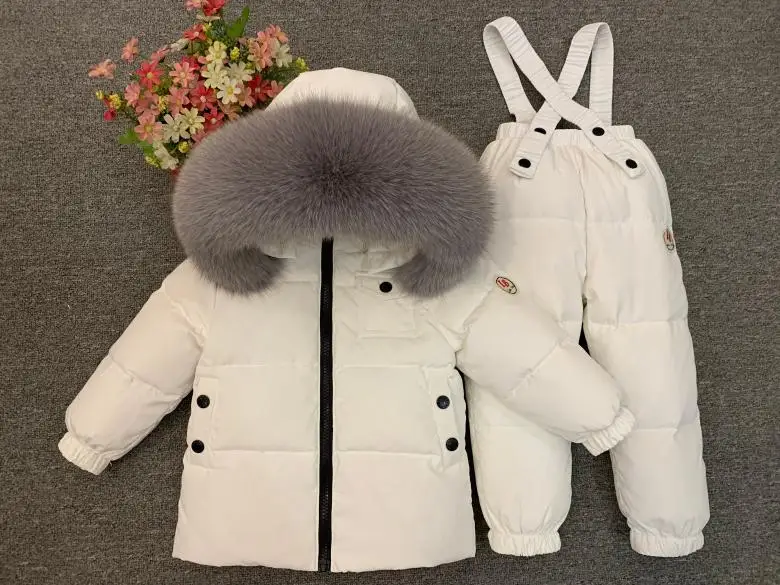 Комплект из 2 предметов, куртка и штаны на утином пуху с капюшоном и большим мехом, для мальчиков и девочек, 2021