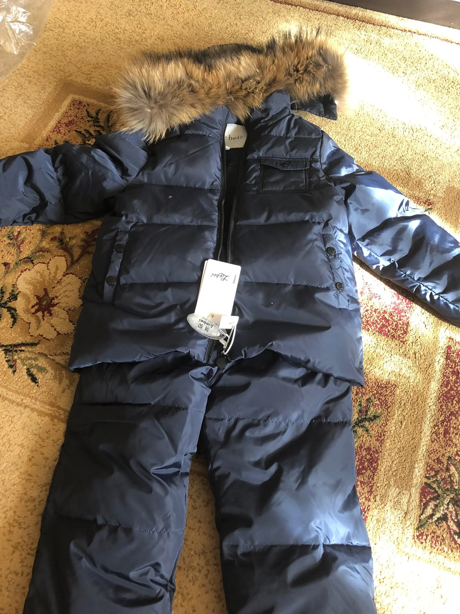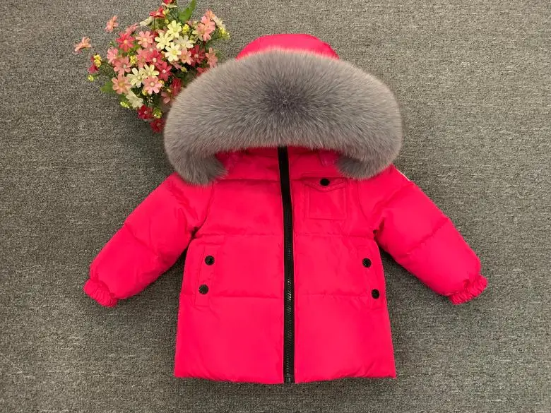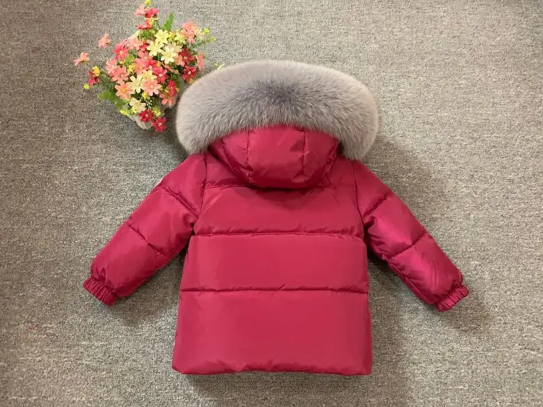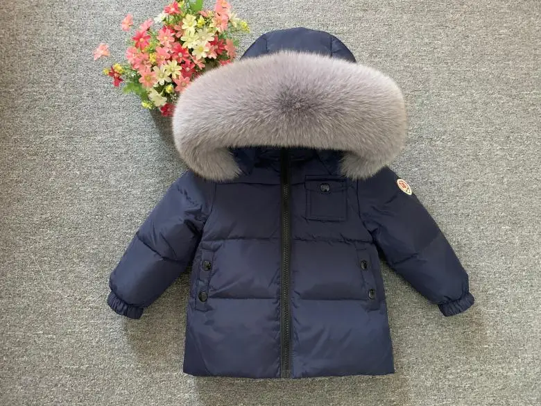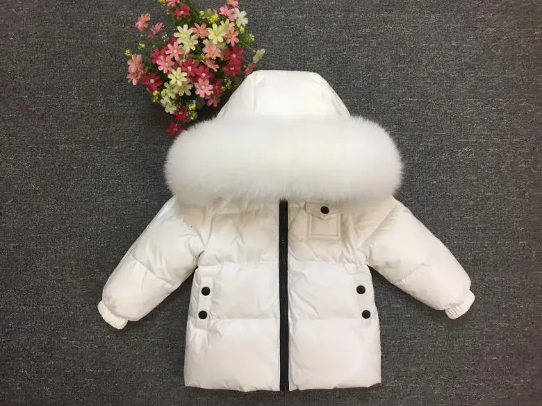 Комплект из 2 предметов, куртка и штаны на утином пуху с капюшоном и большим мехом, для мальчиков и девочек, 2021