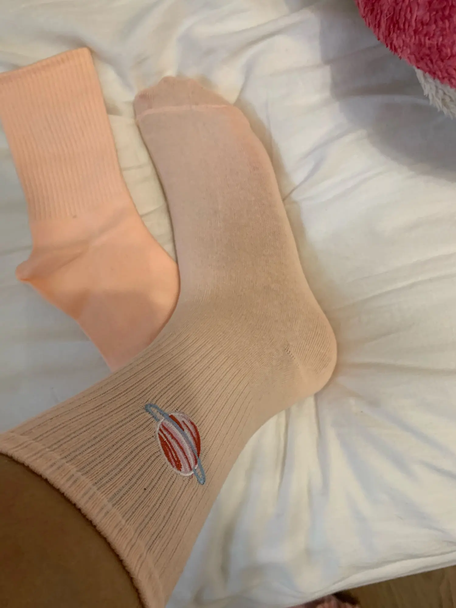 На фотографии цвет носков кажется бежевым, но в жизни он розоватый.