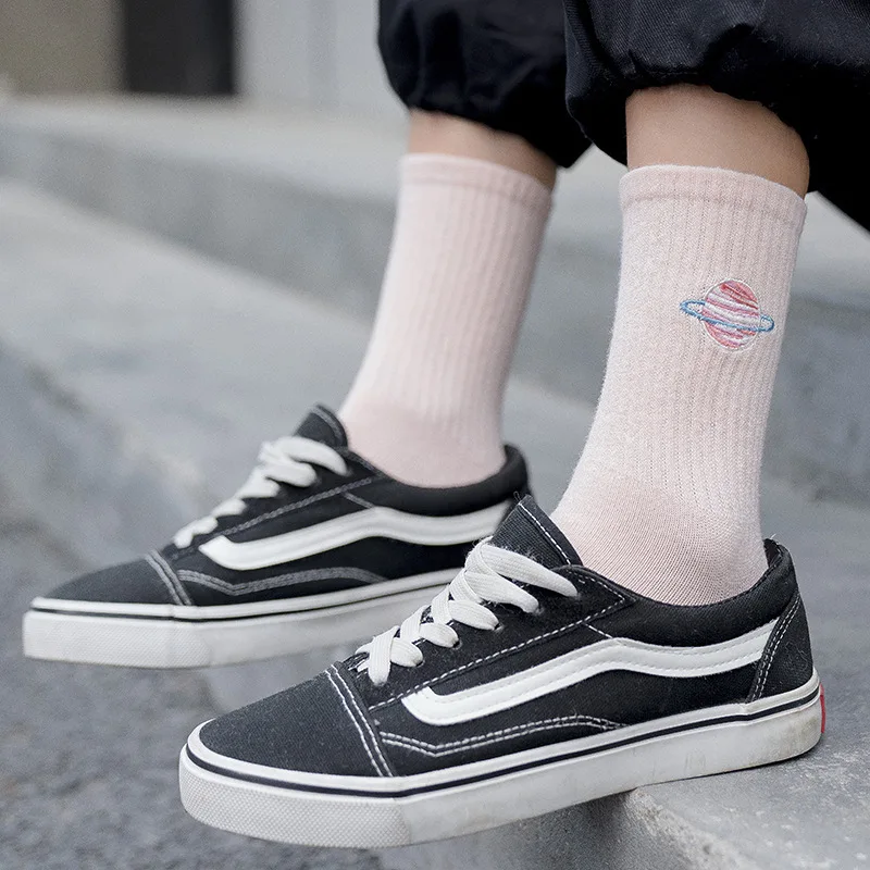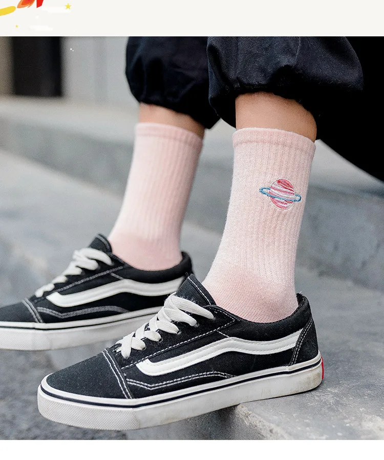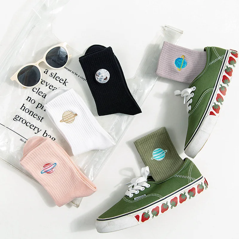 Осенние милые японские женские носки в стиле Харадзюку длинные носки с вышивкой планеты магии в Корейском стиле женские милые носки