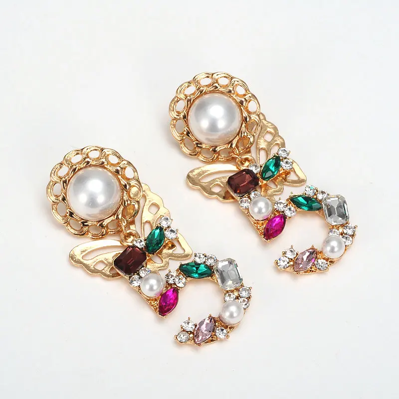 Стильные большие яркие серьги-подвески для женщин, 5 цифровых висячих сережек с бабочкой и жемчугом в стиле барокко
