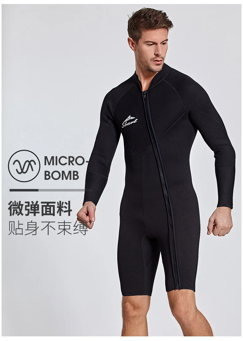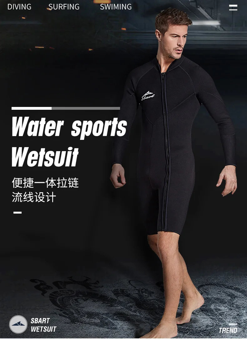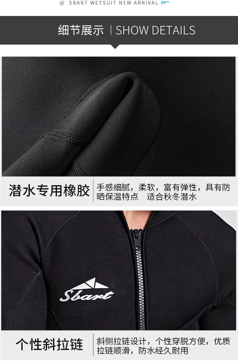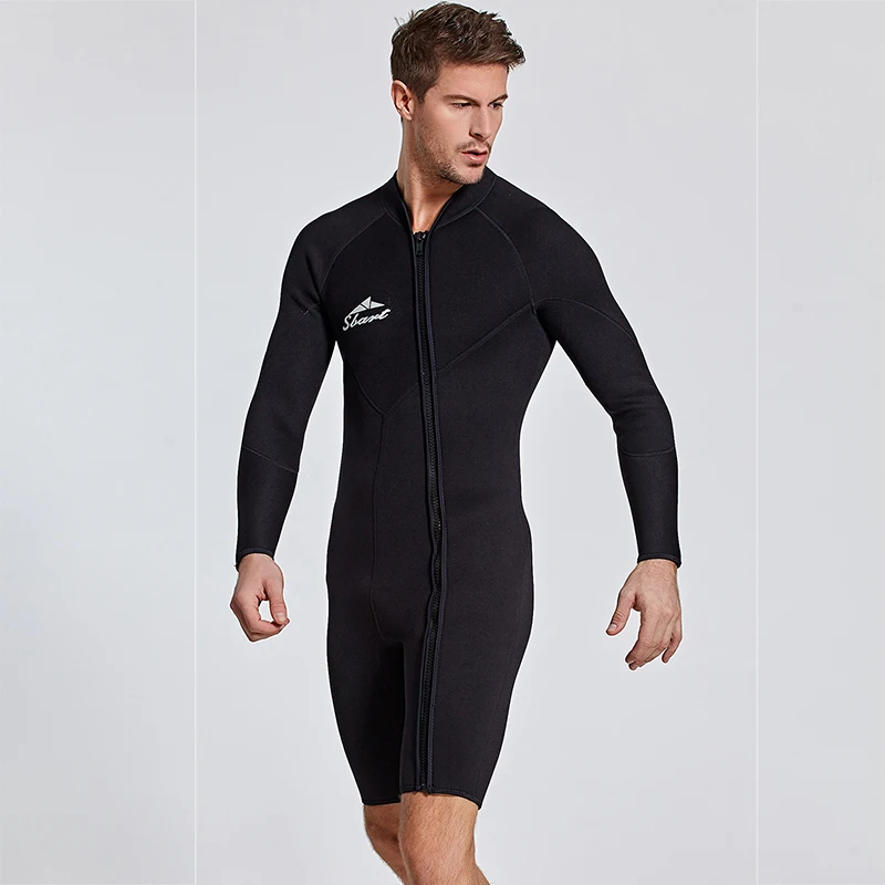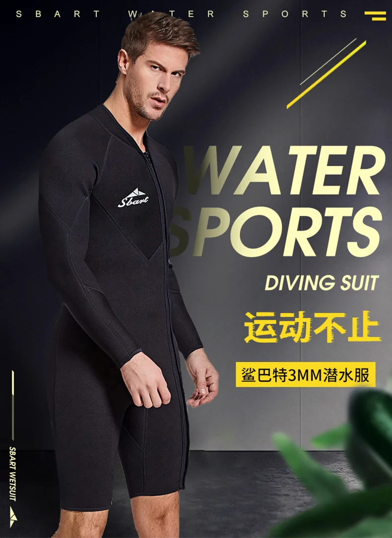 Неопреновый гидрокостюм SBART 3 мм, мужской сохраняющий тепло, для плавания, подводного плавания, купальный костюм с коротким рукавом, триатлоновый гидрокостюм для серфинга и Сноркелинга
