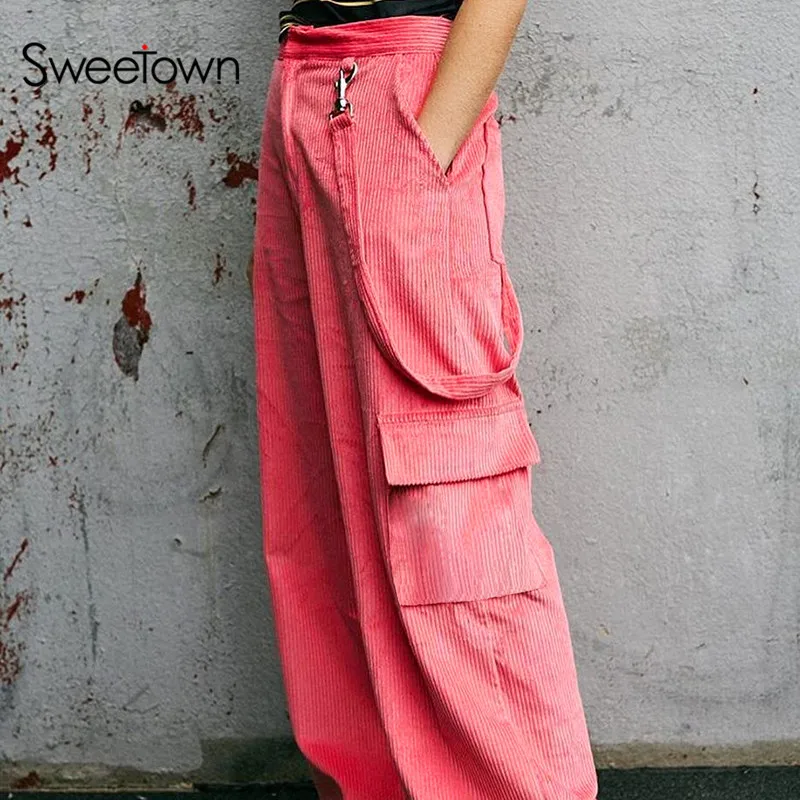 Брюки женские вельветовые с широкими штанинами, с карманами, Осень-зима, 2020