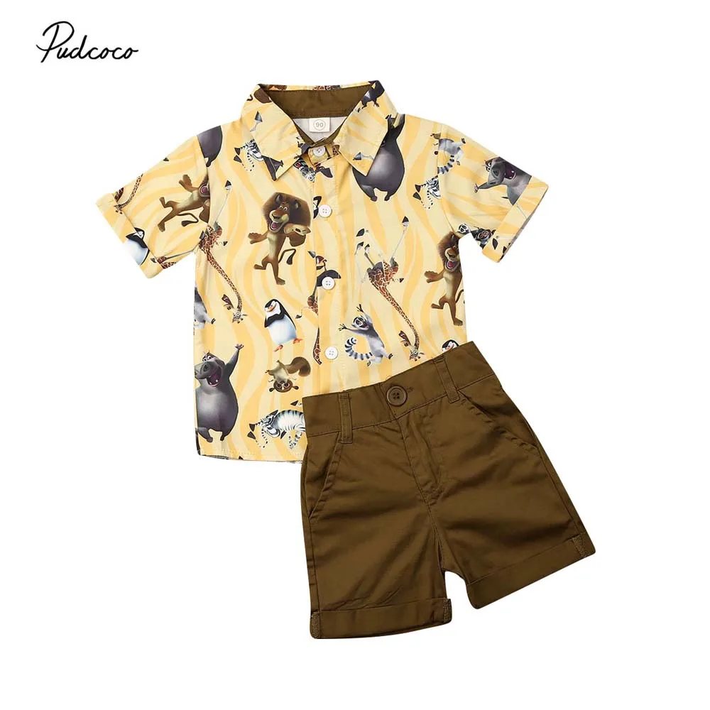 2019, Детская летняя одежда, 2 шт., для младенцев, детей, мальчиков, джентльменов, официальная одежда, топы с животными, рубашки, шорты, нижняя одежда, Женская