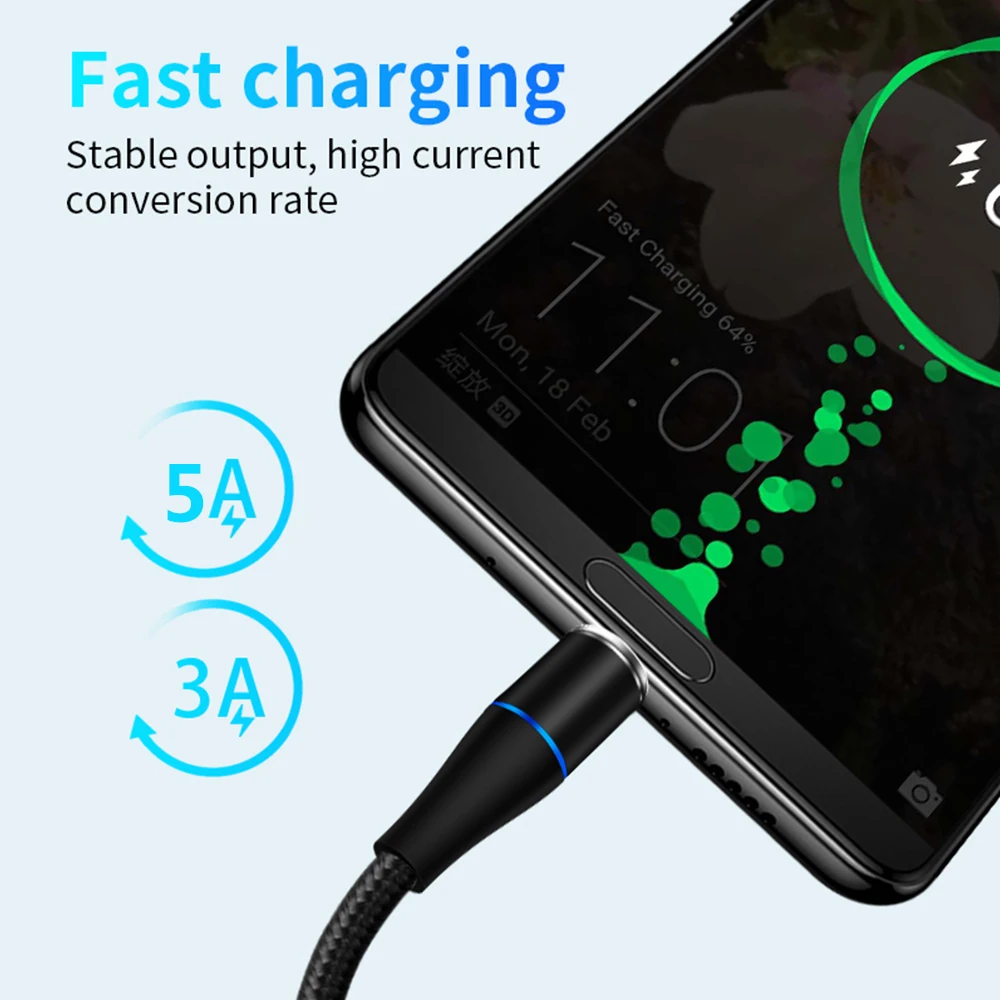 Магнитный зарядный кабель 3A для быстрой зарядки 3,0 Micro USB заря...