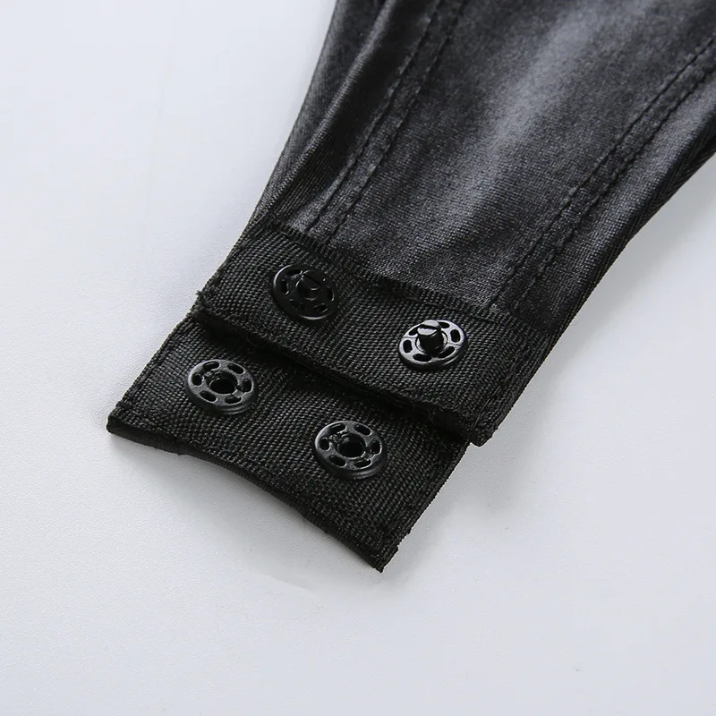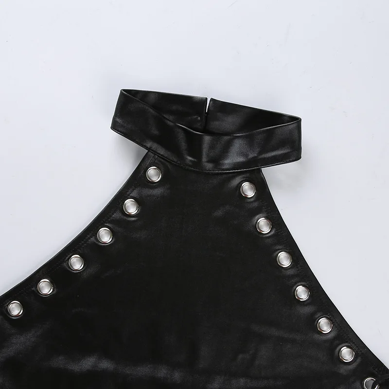 Эротический топ из лакированной кожи, с открытой промежностью, с от...