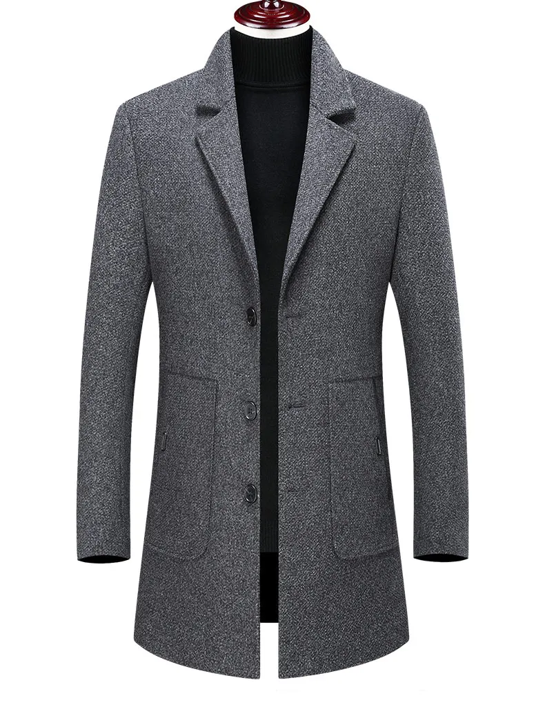 Ветровка мужская шерстяная с отложным воротником, модная повседневная верхняя одежда, осень-зима